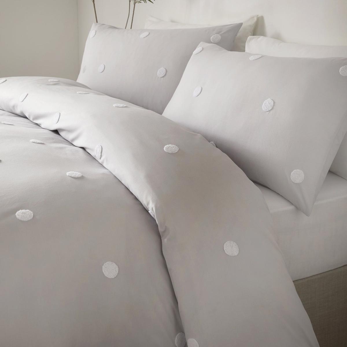 Appletree Dot Silver 100% Cotton Duvet Cover and Pillowcase Set Silver (Grey)