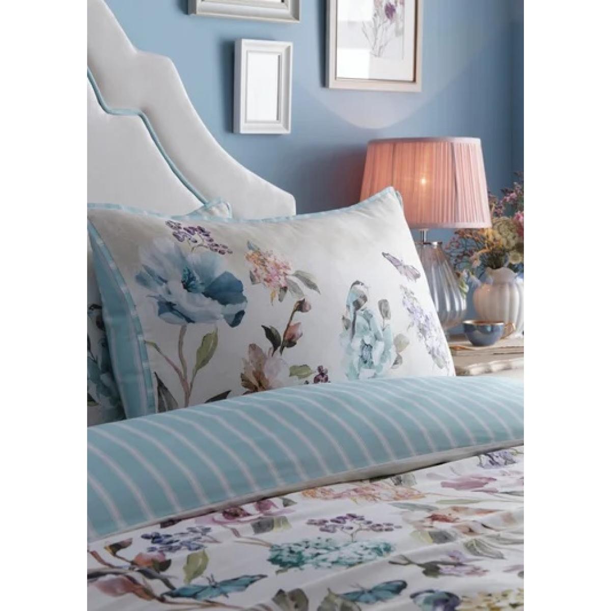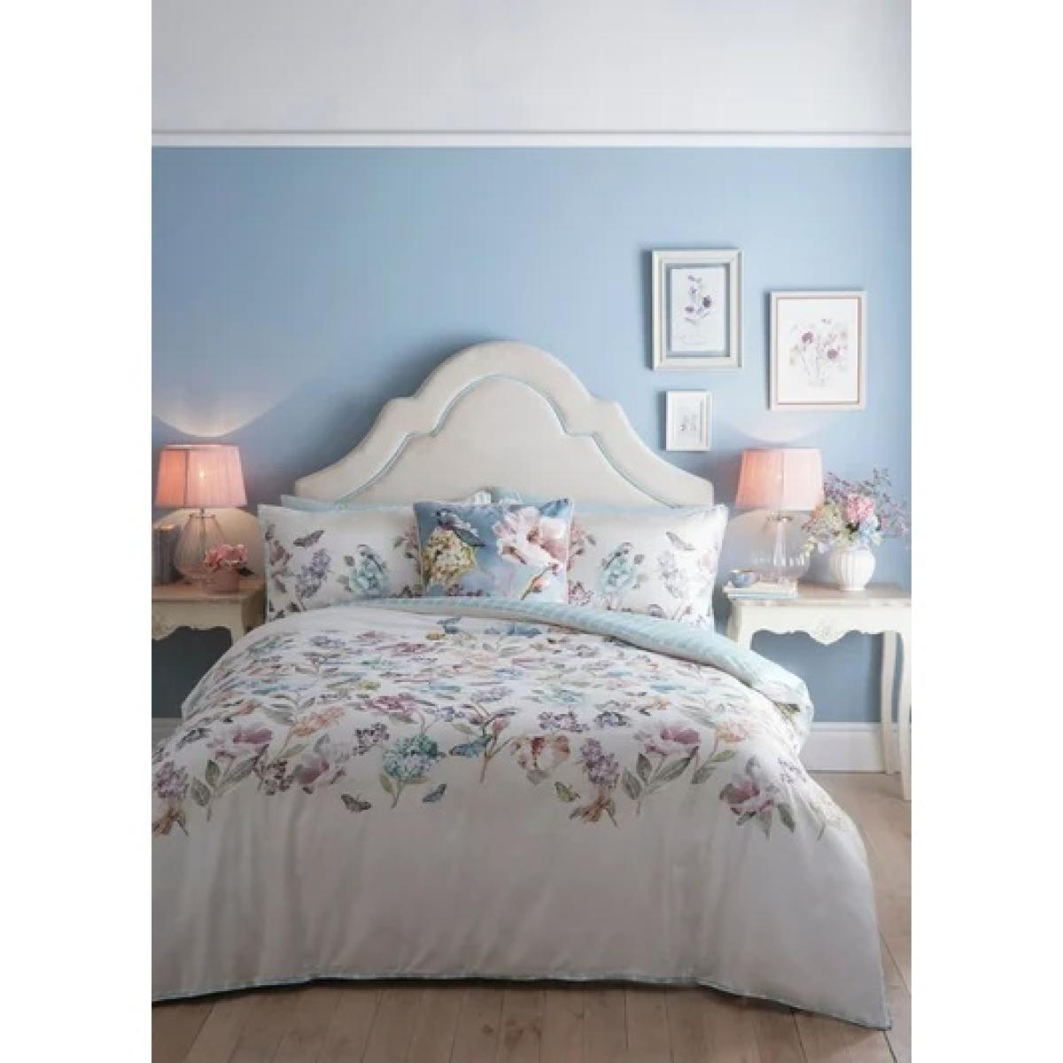 Immerse yourself in elegance with the Portia Duvet Cover Set by Appletree – a true statement of luxury. Crafted from 200-thread count, 100% cotton, it showcases a stunning hand-painted bird and floral design. The duck egg reverse features a refined vertical stripe, adding a subtle touch of sophistication. Experience heritage, comfort, and timeless charm with Portia. Features: 100% Cotton 200 Thread Count Reversible Double, King and Superking Size Duvet Includes Pair of Pillowcases Care Instructions: Wash at 40°C Before Use Do not Dry Clean Do not Bleach Low Heat Tumble Dry Cool Iron Please note All screens vary in colour reproduction and whilst every effort has been made to display the colour as accurately as possible it is for guidance only.