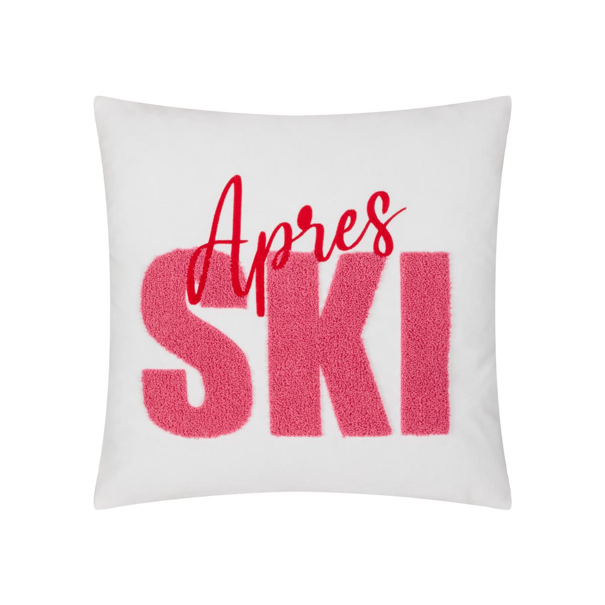 Modern with a retro twist, the Aprs Ski cushion features a combination of techniques with print and looped tufting. The textured text in a vibrant colour palette adds a playful touch to any living space. Perfect for layering within any home. This cushion is the ideal addition to your home this winter season.