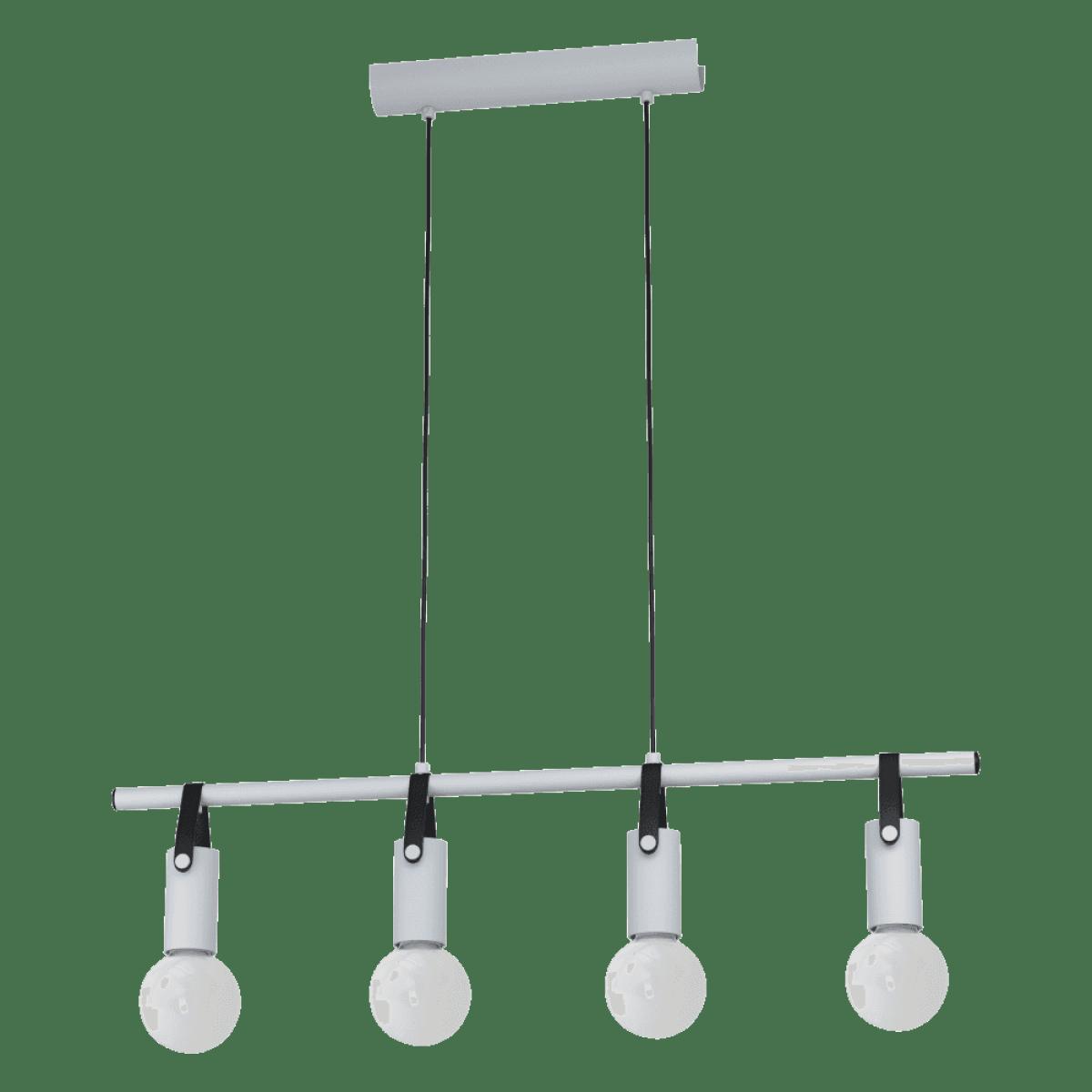 Contemporary and Scandinavian ceiling light boasting a steel grey and black leather finish. The Apricale 4 light ceiling pendant bar is a beautifully unique piece from Eglo Lighting. This pendant fitting is composed of a steel grey frame, which features 4 black leather straps which suspend the exposed lamp holders, perfect for displaying vintage bulbs. Feature this piece above dining tables or kitchen units for a modern and stylish focal point. Pair this light with our 4w LED Vintage bulbs for a rustic and industrial glow to complement the exposed bulb styling.