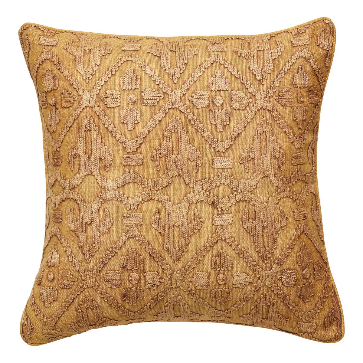 I really like this basic cushion cover because of its warm ochre tone and textured embroidery that adds visual interest without overpowering a space. It works particularly well in eclectic, boho, or Mediterranean-inspired interiors, where its earthy hue complements natural materials like wood and woven textures. Practical styling tips include pairing it with neutral-toned cushions to create a layered, inviting look, or mixing it with other muted shades for a cohesive feel. It's a versatile piece that can add warmth and depth to sofas, armchairs, or even beds, making it a smart choice for updating a space without a complete overhaul.