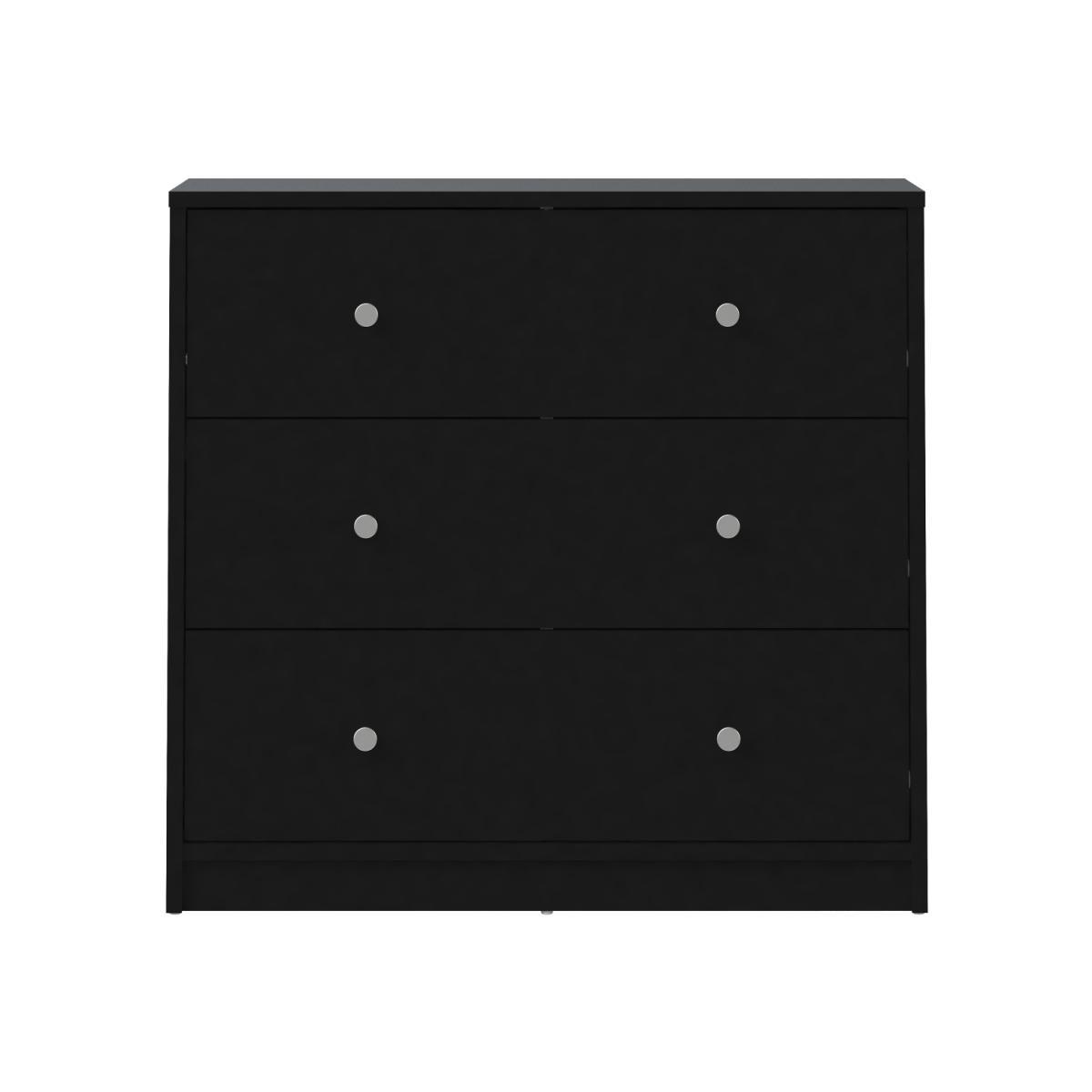 Fall for the alluring modern designs of the April collection. The rich dark hues bring depth to your interiors and this chest will add warmth as well as valuable storage. Laminated board with increased resistance to scratches and damage3 drawers on smooth gliding runners. Contemporary round handles. Complements black pieces in the April collection Easy self-assembly