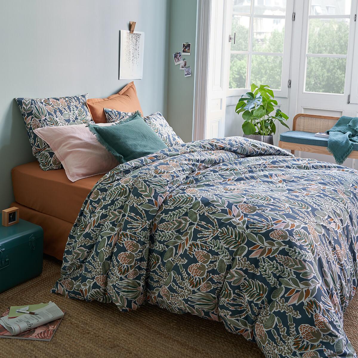 Aqua Botanical 100% Cotton Percale 200 Thread Count Duvet Cover