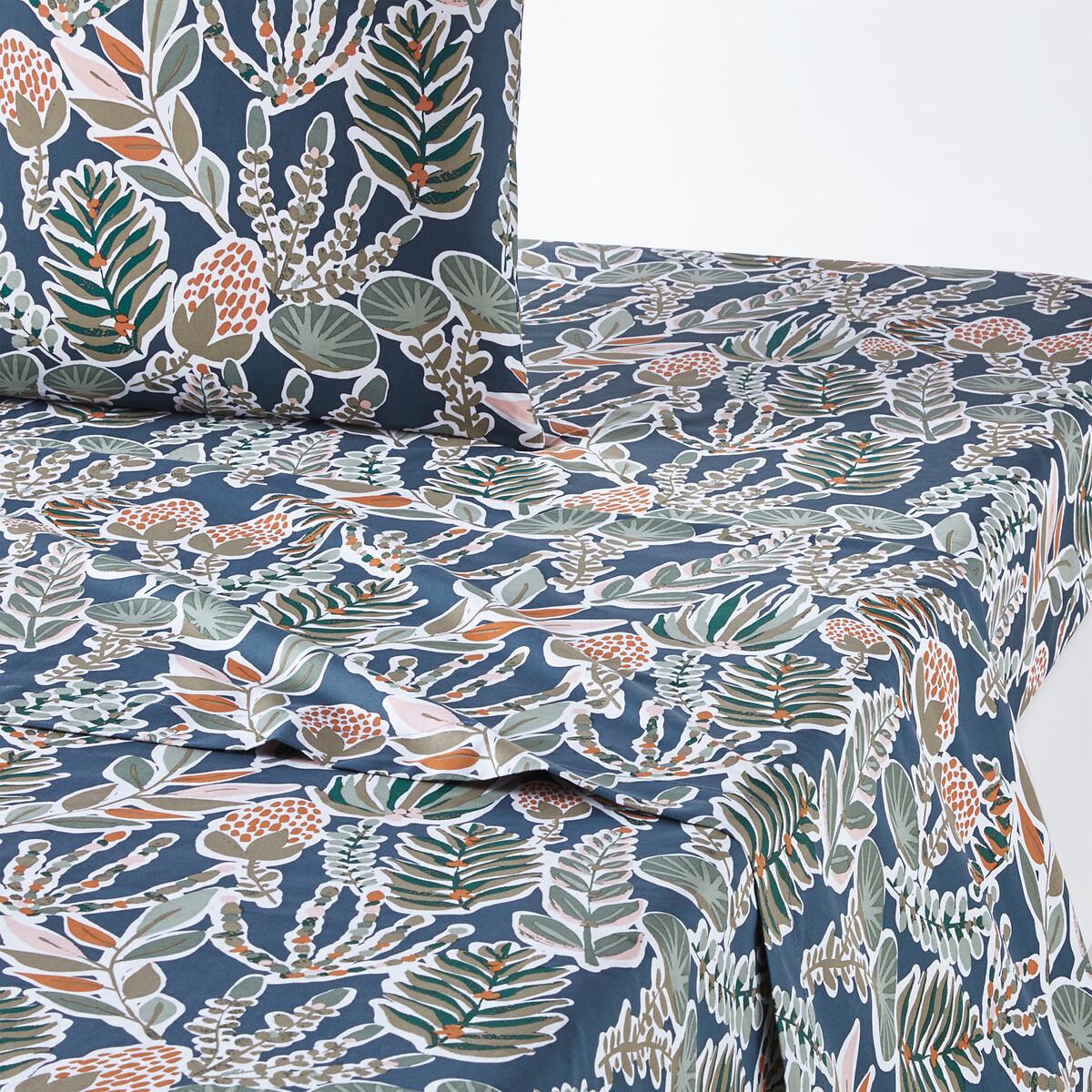 Aqua Botanical 100% Cotton Percale 200 Thread Count Flat Sheet