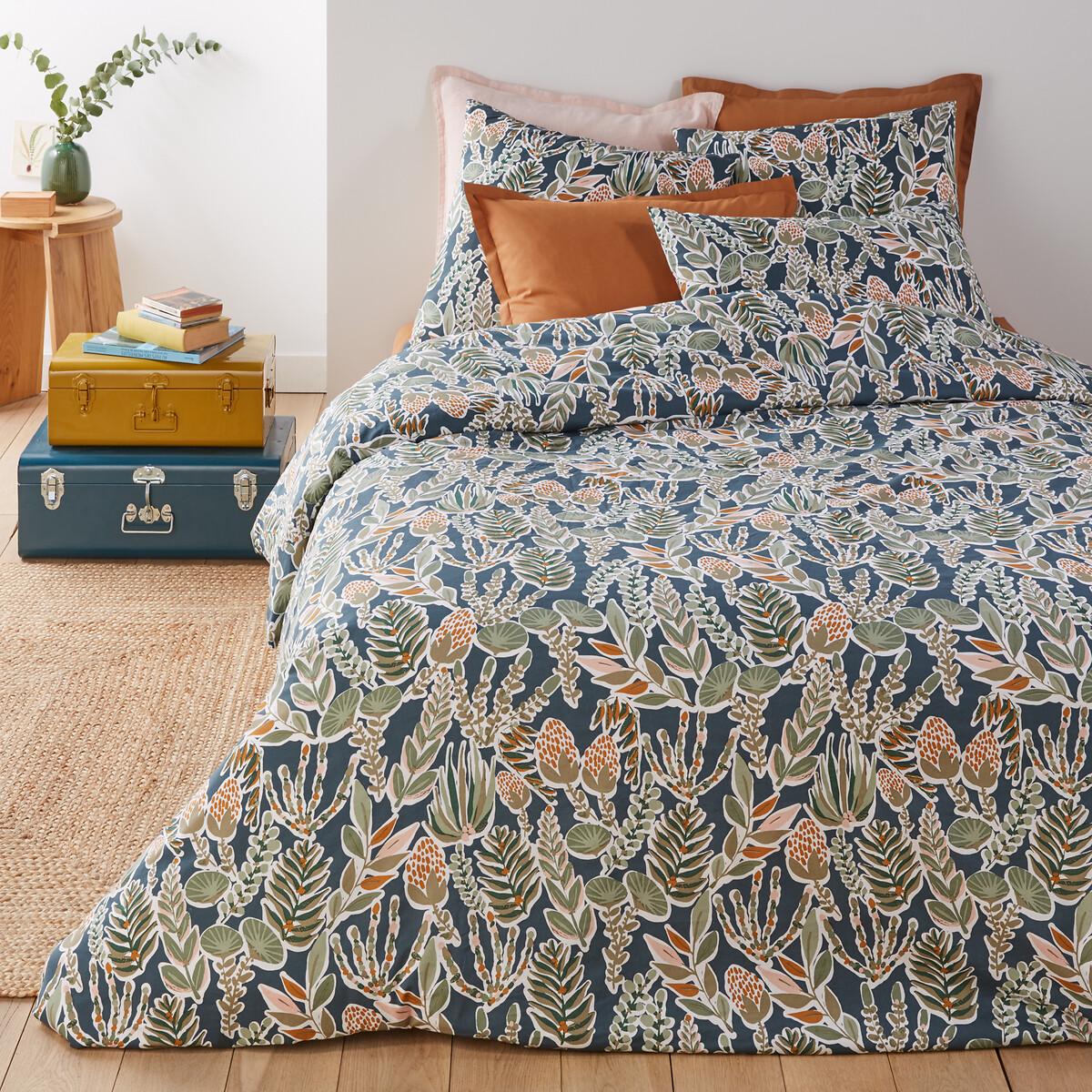 A lush and exotic print that showcases aquatic plants? Look no further than the Aquajungle collection. Perfect for creating a tropical ambiance. A design exclusive to La Redoute Interiors. The cotton percale offers a pleasant feeling of freshness and lightness. Its tight weave makes it particularly soft for premium comfort. A matte and smooth material that will soften over time. Product Details • 100% cotton • Percale • 200 thread count: The higher the thread count, the higher the quality of the weave • Foliage print on both sides • Envelope-style opening. Care Advice • Machine washable at 60°C • By washing your laundry at 40°C instead of 60°C, you limit energy consumption. Dimensions • 140 x 200cm: Single • 200 x 200cm: Double • 240 x 220cm: Super King • 260 x 240cm: King. Pillowcases sold separately. • OEKO-TEX® Standard 100. Standard 100 certification by OEKO-TEX® tests textile products for harmful substances via an independent, international label.