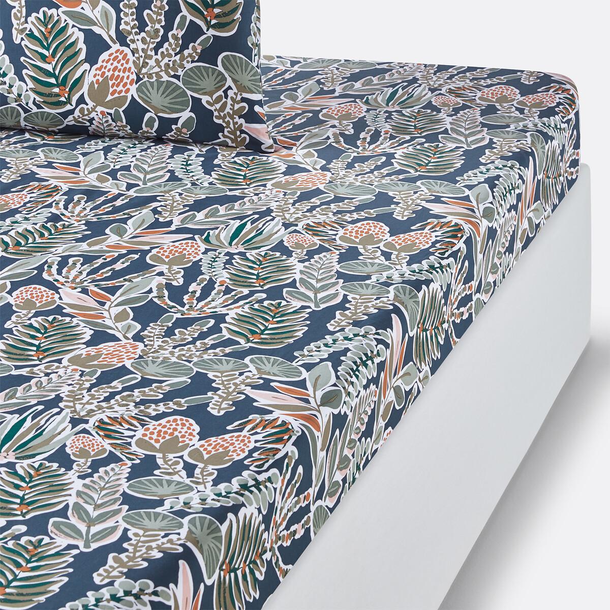 A lush and exotic print that showcases aquatic plants? Look no further than the Aquajungle collection. Perfect for creating a tropical ambiance. A design exclusive to La Redoute Interiors. The cotton percale offers a pleasant feeling of freshness and lightness. Its tight weave makes it particularly soft for premium comfort. A matte and smooth material that will soften over time. Product Details • 100% cotton • Percale • 200 thread count: The higher the thread count, the higher the quality of the weave • Leaf print • Flap height 30cm for thick mattresses. Care Advice • Machine washable at 60°C • By washing your laundry at 40°C instead of 60°C, you limit energy consumptionDimensions • 9. 0 x 190cm: Single • 140 x 190cm: King • 160 x 200cm: Super King • 180 x 200cm: King • OEKO-TEX® Standard 100. Standard 100 certification by OEKO-TEX® tests textile products for harmful substances via an independent, international label.
