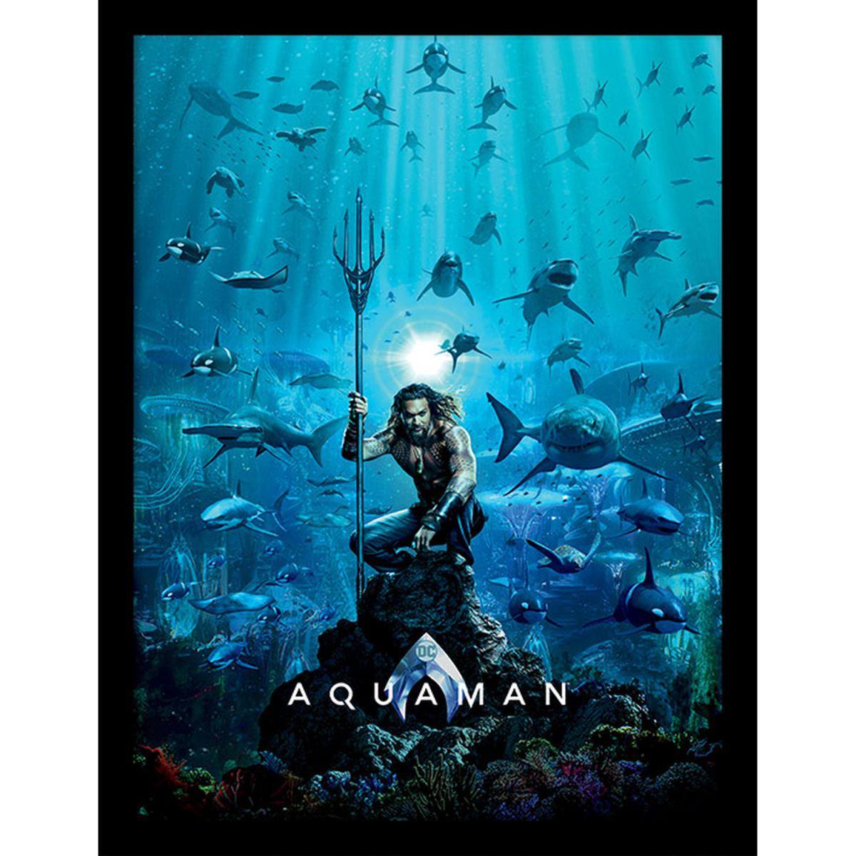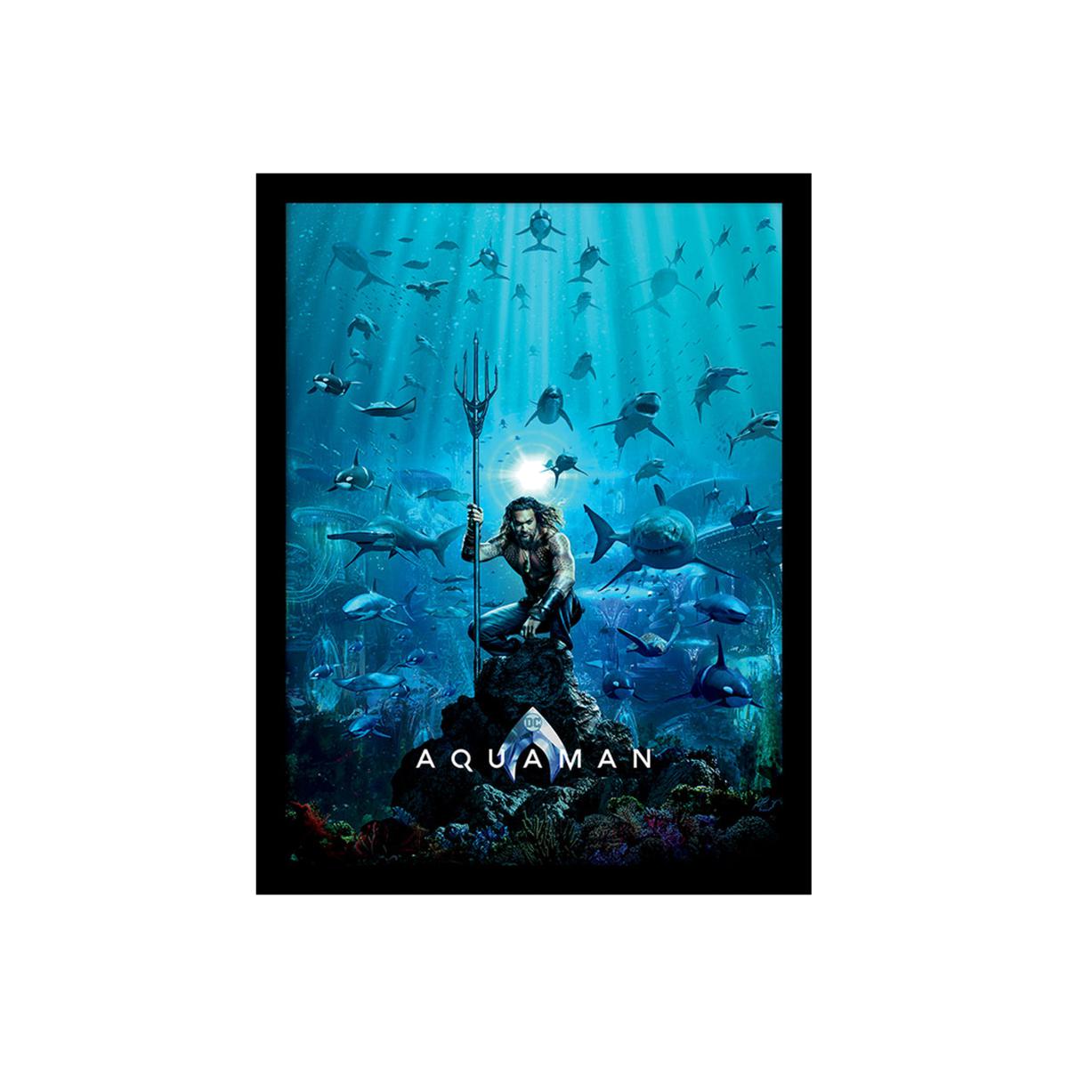 30x40cm Framed Print, in elegant black MDF frame with hanging fixings on the back for displaying this great Aquaman print anywhere around your home.