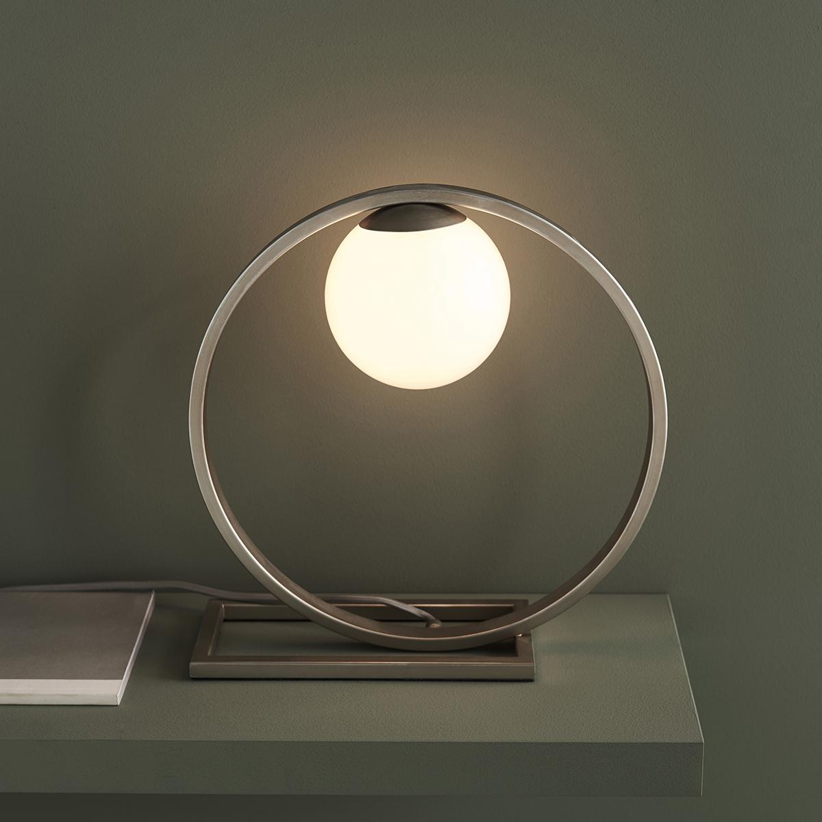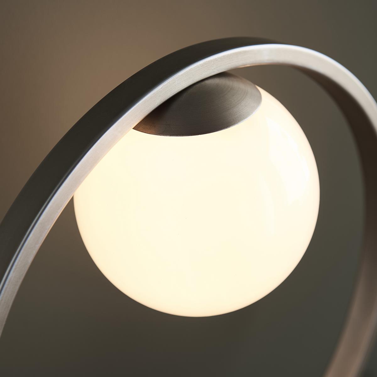 I love this lamp because of its contemporary yet versatile design, making it a stylish statement piece that can effortlessly elevate a variety of interiors. Its opal glass adds a soft, ambient glow, while the silver finish lends a modern touch that works well in minimalist, Scandinavian, or even eclectic spaces. For practical styling, place it on a side table or console to add interest without clutter; it works particularly well in bedrooms or living rooms where a mix of function and aesthetic is key. Pair it with neutral textiles and metallic accents to create a balanced, sophisticated look that feels current yet timeless.