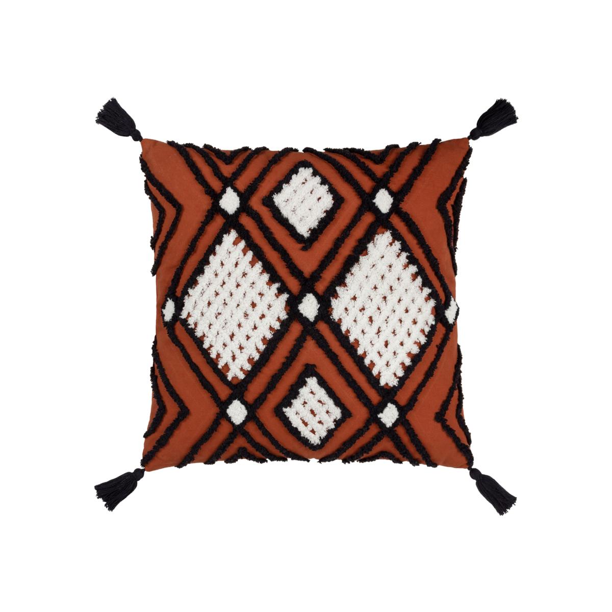 Aquene Tufted Tasselled Cushion - Brick-Black