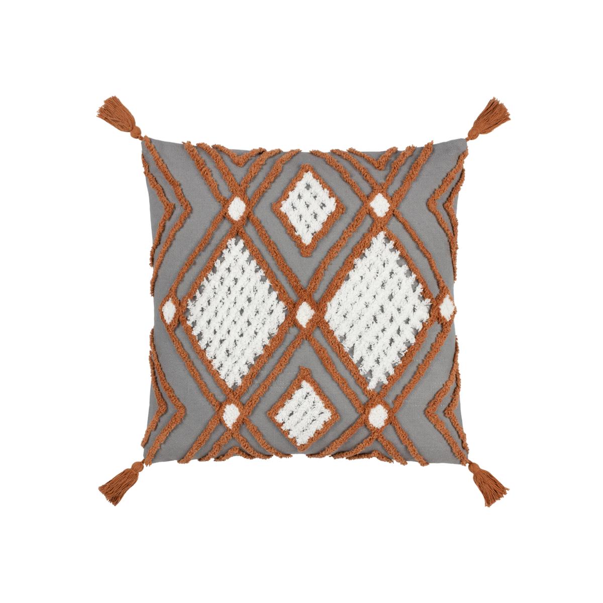 Aquene Tufted Tasselled Cushion - Charcoal-Brick