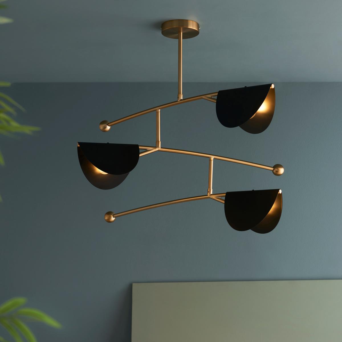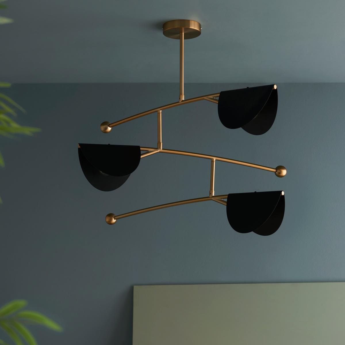 I love this semi-flush because it offers a sleek, modern take on classic ceiling lighting with its polished gold finish and asymmetric black shades. It works particularly well in contemporary and minimalist interiors, adding warmth and a touch of sophistication without overwhelming the space. Practical styling tips include hanging it in a dining room or living area where it can serve as a statement piece, and pairing it with other gold accents or matte black accessories for a cohesive look. Since it’s dimmable, you can easily adjust the ambience for different occasions, making it both functional and stylish.