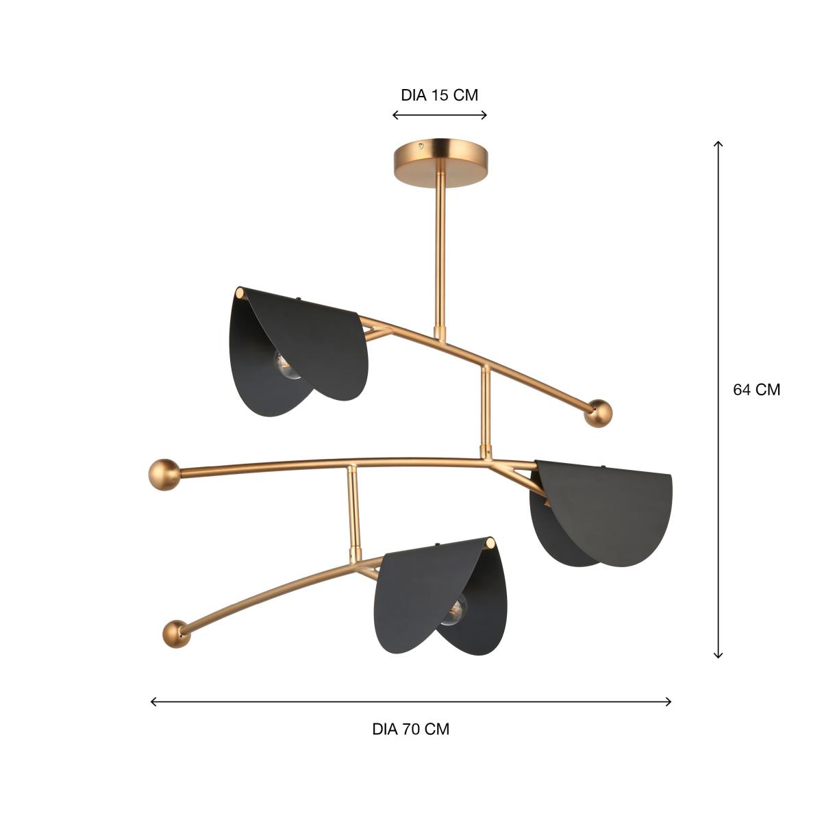 Aquila 3 Light Dimmable Semi Flush Ceiling Ceiling Light Gold