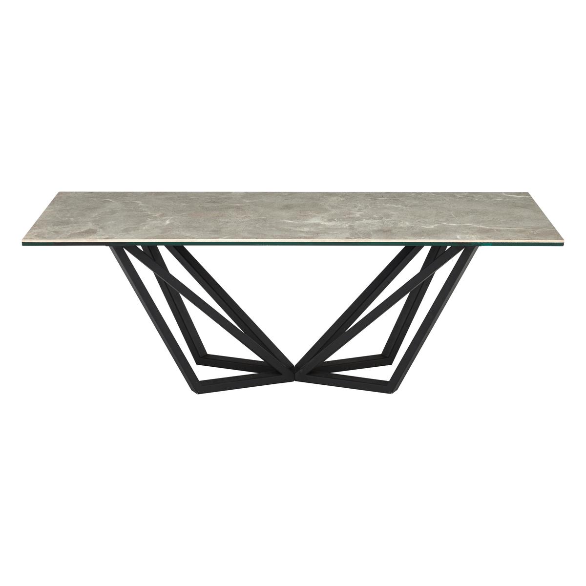 Put luxurious style front and center with this gorgeous coffee table, finished with an opulent grey marble effect. Why you'll love it This coffee table is just made for a glossy hardback and a steaming coffee. Modern glam style for luxe living. Marble- effect ceramic and glass top is durable and hardwearing. Stunning angular black- powder coated steel base. Exclusively available at Furniture Village. This coffee table is part of the distinctive Aquila range. What you need to know We recommend always using coasters and placemats. Pair with the matching Aquila sideboard and lamp table. The Aquila collection also includes an extending dining table and swivel dining chairs.