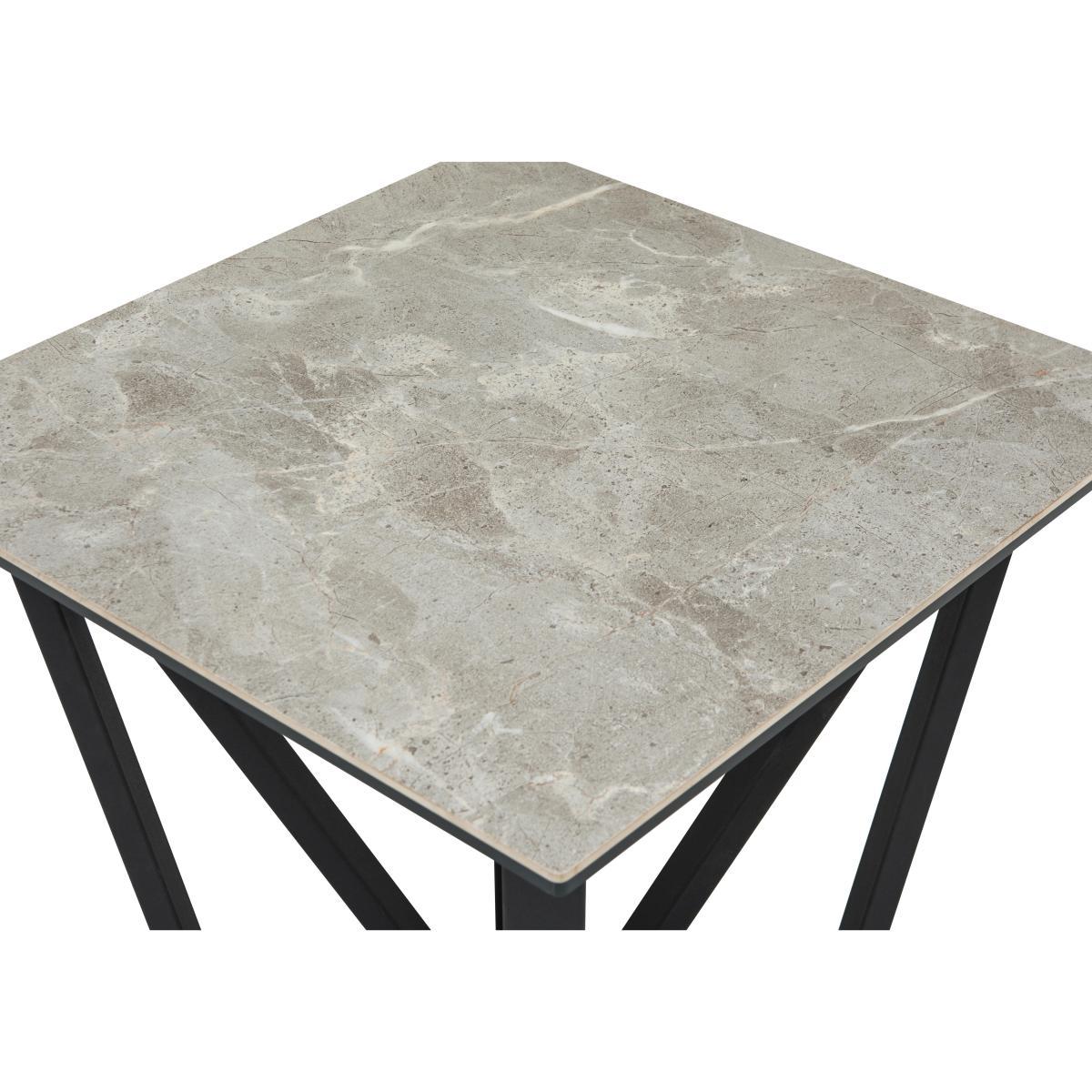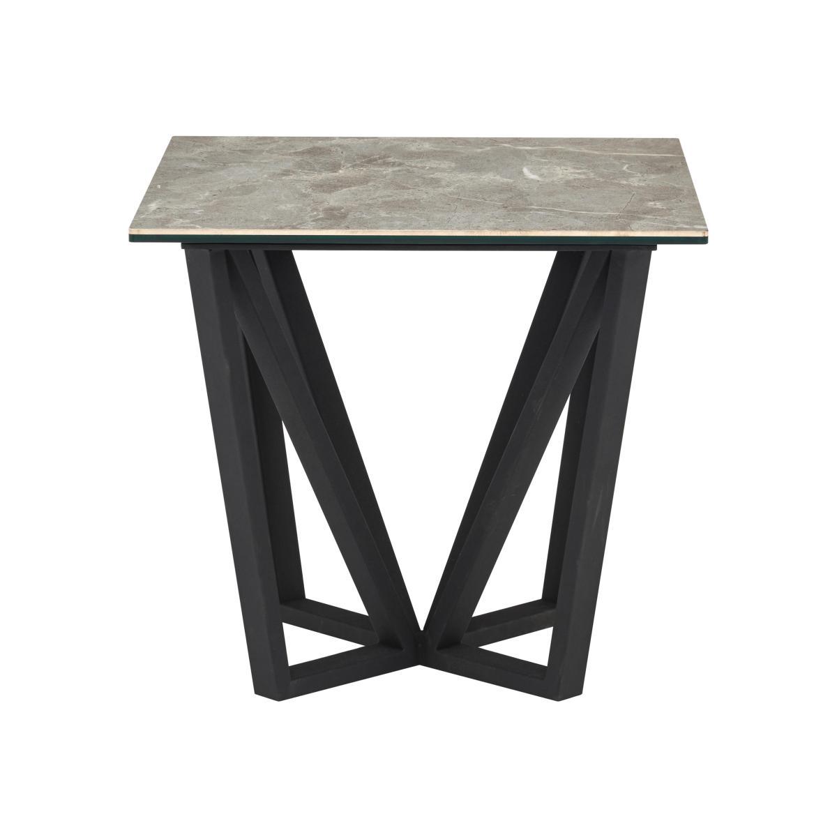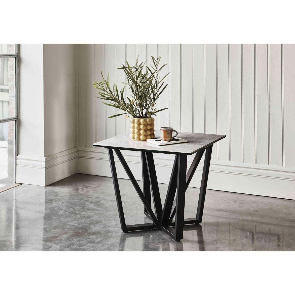 The very essence of timeless modern glamour, Aquila is a finely curated collection of gorgeous dining and occasional furniture that brings a certain opulent style to any home. Creatively juxtaposing strength and beauty, Aquila places striking marble effect ceramic and glass tops upon dramatic black powder-coated steel bases. The effect is stunning. As well as a large extending dining table and luxurious sideboard, this collection includes a striking swivel faux leather dining chair. Two occasional tables complete the range, ensuring that you can enjoy this striking look in the living room as well as the dining room. Timeless modern glamour. Stylish lamp table with ceramic and glass top. Marble-effect finish. The Aquila lamp table may be small but it’s undoubtedly perfect formed. With its beautiful grey marble effect ceramic and glass top and distinctive angular powder-coated black steel base, everything about this end table says timeless glamour and chic style. Perfect placed next to a sofa arm, this side table is roomy enough to support a table lamp, books and more, and its durable finish means that it’s ideal for everyday living spaces. Part of the Aquila collection, the Aquila lamp table is one of several pieces which share the same gorgeous marble effect ceramic style. The collection includes a stunning extending dining table as well as stylish swivelling dining chairs. A Furniture Village exclusive. Did you know?. Ceramic is highly durable, and heat and scratch resistant.
