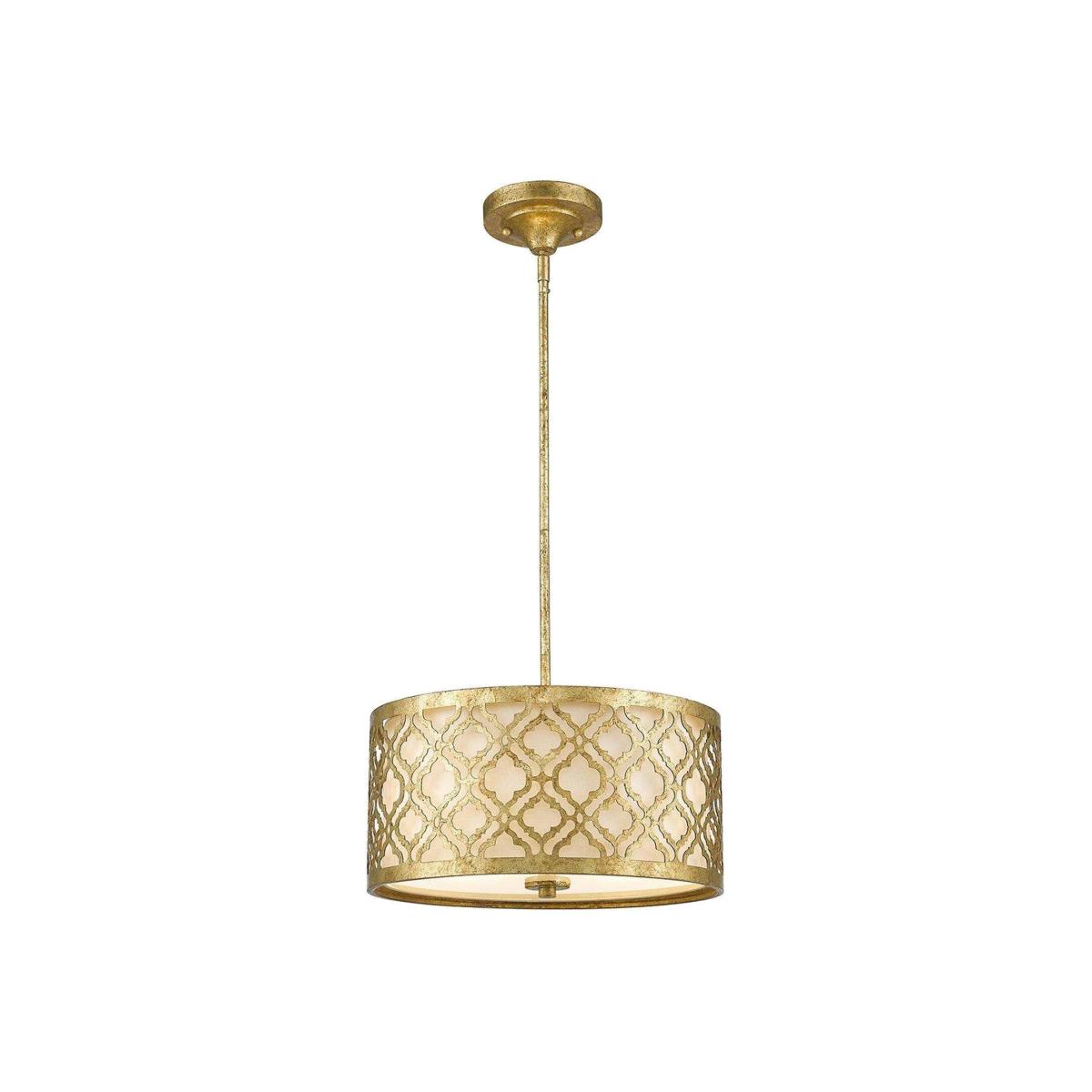 This has a beautiful distressed gold outer shade with a cut-out pattern design. The inner of the fittings consist of cream linen fabric shades and glass diffusers. The purpose of both of these is to soften the light to create a warm atmosphere in the room. A large variety of different fittings are available, allowing you to choose the best ones for the setting. The pendants are convertible to semi-flush fittings. All This fittings are finished by hand - minor variations are likely to occur.