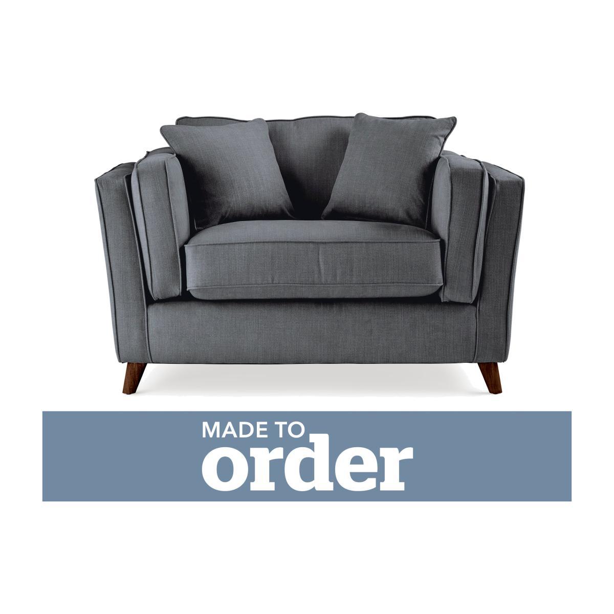 With its modern mid-century design, the Arabella Snuggle Chair would make a stunning addition to a wide range of home decor styles, boasting piped edge detailing and elegant tapered wooden legs. Thanks to the medium-soft, high resilient foam filled seats, this chair offers premium levels of comfort and support, whilst the Ultrasilk Dacron fibre wrap helps the seat cushions to keep their shape and stay wrinkle-free. Complete with a fibre-filled backrest and two soft arm cushions, this snuggle chair provides a perfect place to cosy up and relax. This chair is also supplied with two matching scatter cushions and is supported on stylish tapered legs. The Arabella is upholstered in a soft, yet hardwearing brushed plain polyester fabric, available in a choice of gorgeous colours. You can also pick between light and dark wood finished legs so you're sure to find something to suit your style. Our made to order Sofas are crafted with sturdy hardwood frames to ensure that they'll be able to easily handle the toil and strain of everyday life for years to come, but in case the worst should happen, we offer a 10 year upholstery frame guarantee on all our made to order sofas and chairs. To check out our handy sizing guide to help you find out if you’ll be able to get your new furniture into your home. Care Instructions: Wipe fabric regularly with a soft cloth to remove any dust. Keep upholstery out of direct sunlight to prevent discolouring and avoid using detergents or allowing the fabric to become wet as this can damage the fabric. Plump fibre filled cushions regularly to keep their shape.