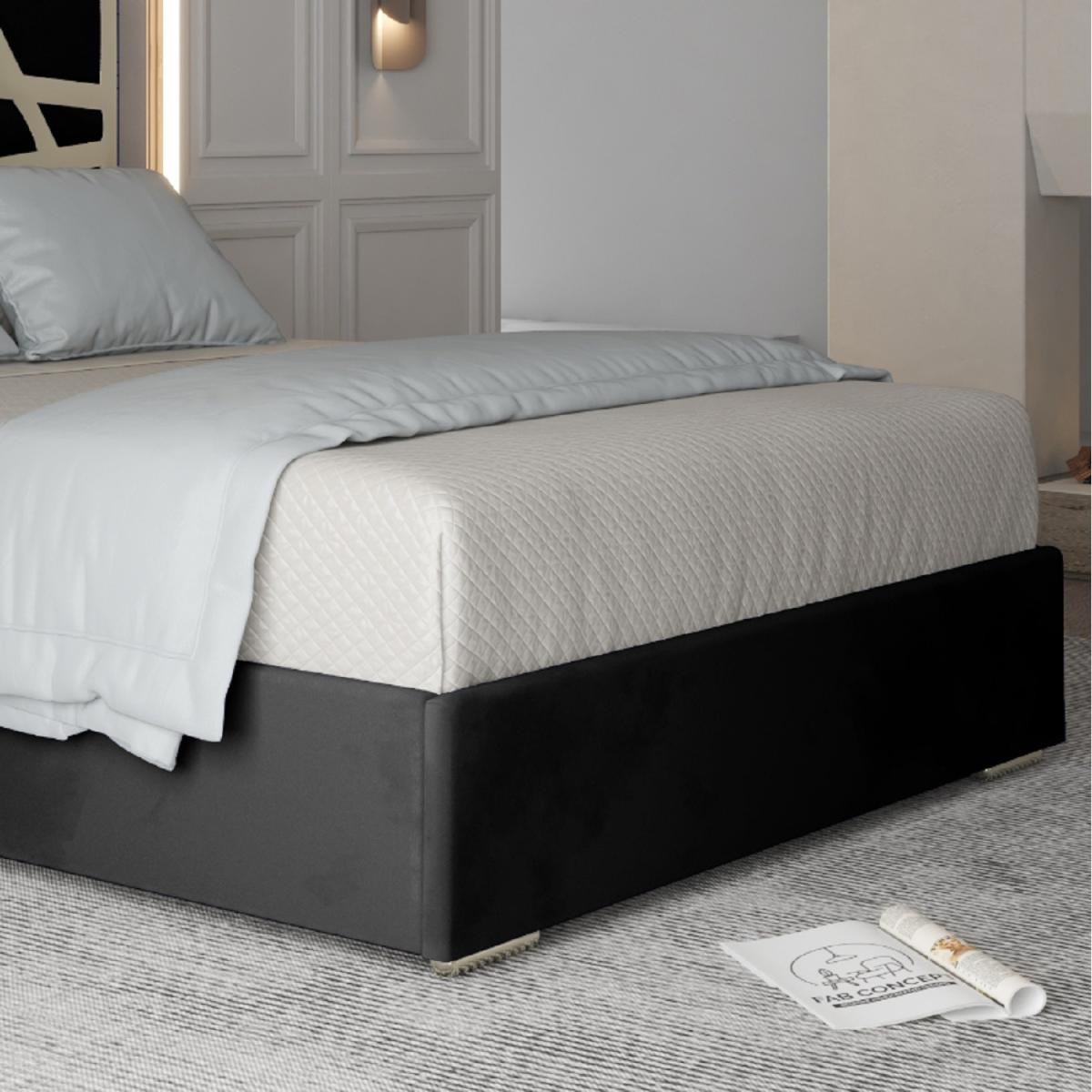 Arabella Upholstered Soft Velvet Metal Bed Frame - Black / Superking