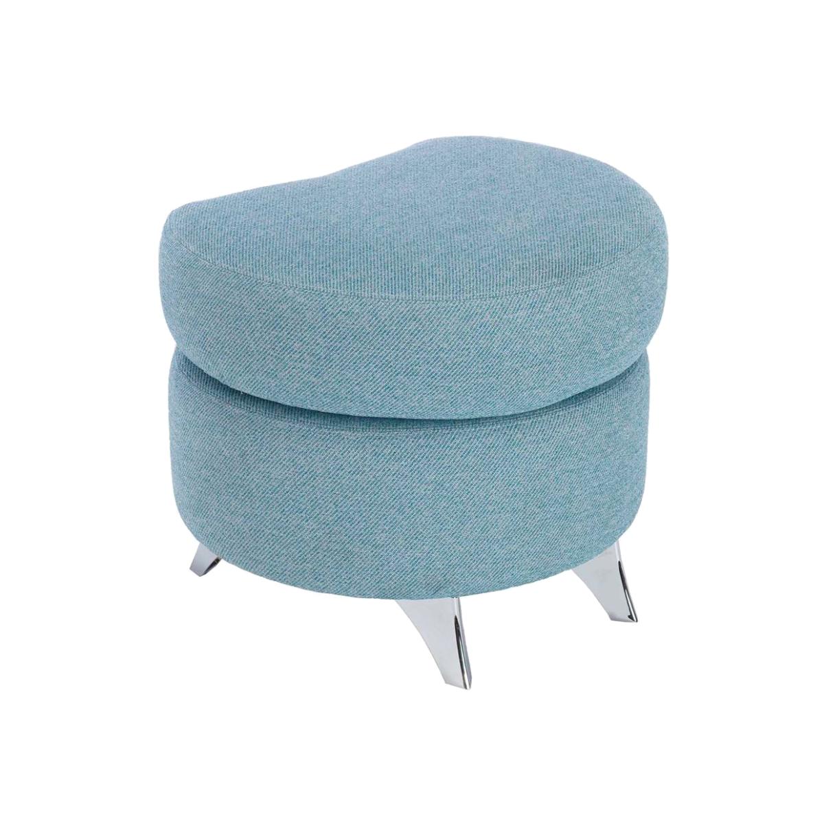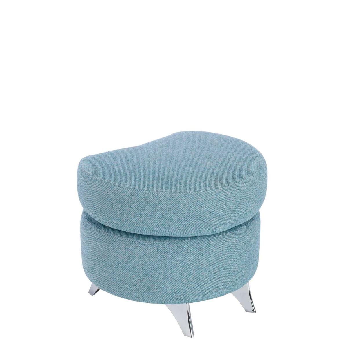 Design. This modern footstool is the perfect accompanying piece to the Aragon Swivel Chair. Offering a little extra comfort, its half-moon shape sits neatly next to the Aragon chair creating a statement look. With a foam filled interior it retains its shape, no matter how many times you rest your feet on it. Its turned chrome feet add a stylish touch making it ideal for any contemporary home.