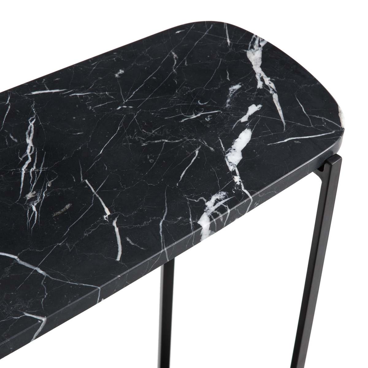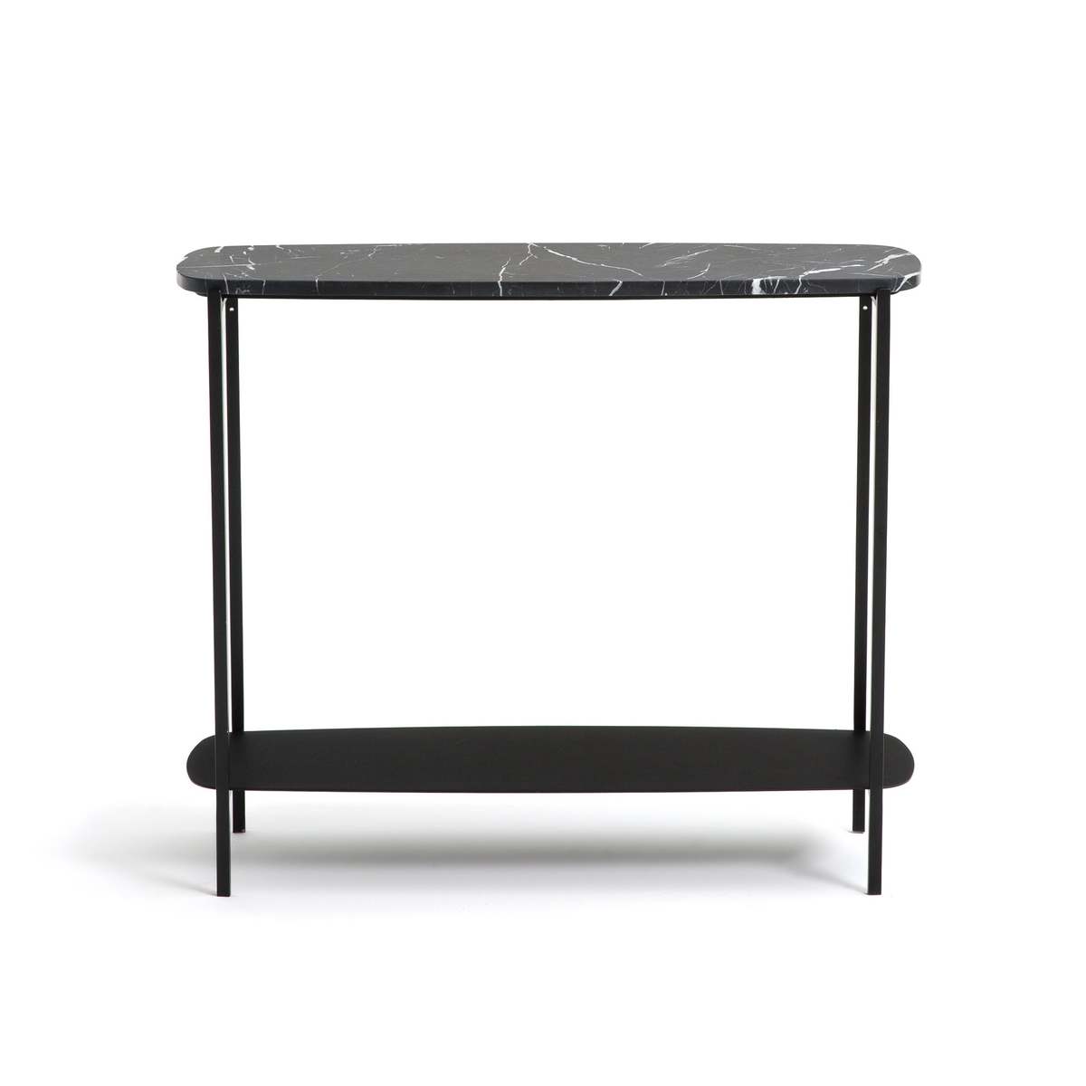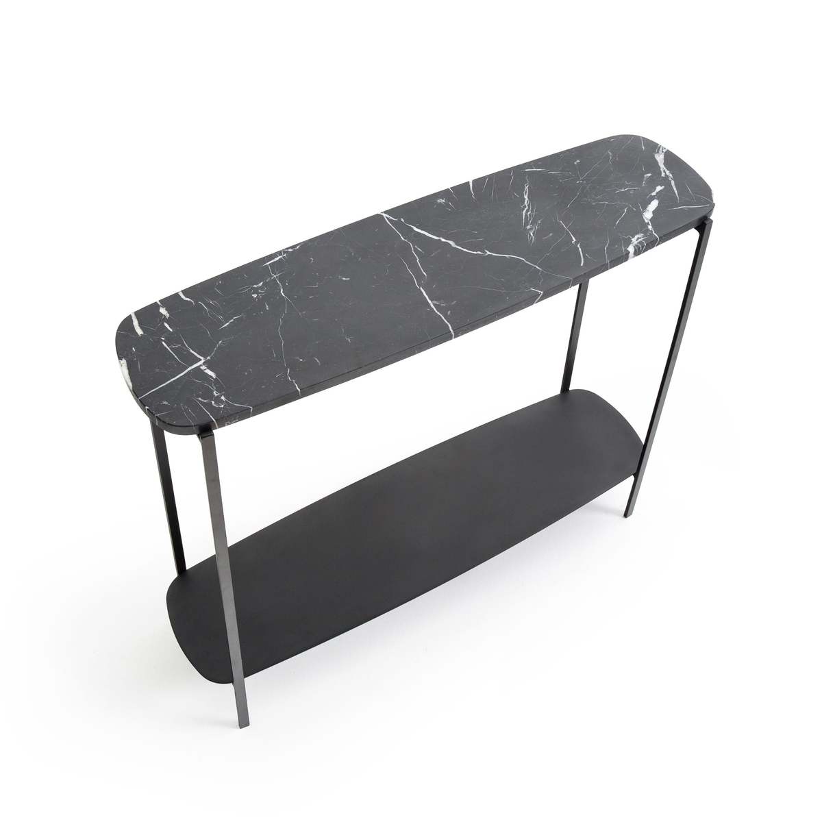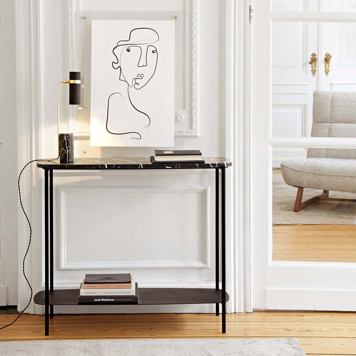 Make an immaculate first impression at home with this slender and elegant console table from our Arambol range. A pleasing combination of organic forms and modern metallics, it has two mable plates at the top and bottom, neatly balanced on an H-shaped frame. It's ideal for hallways, behind sofas or in the living room, adding a touch of glamour wherever you need it