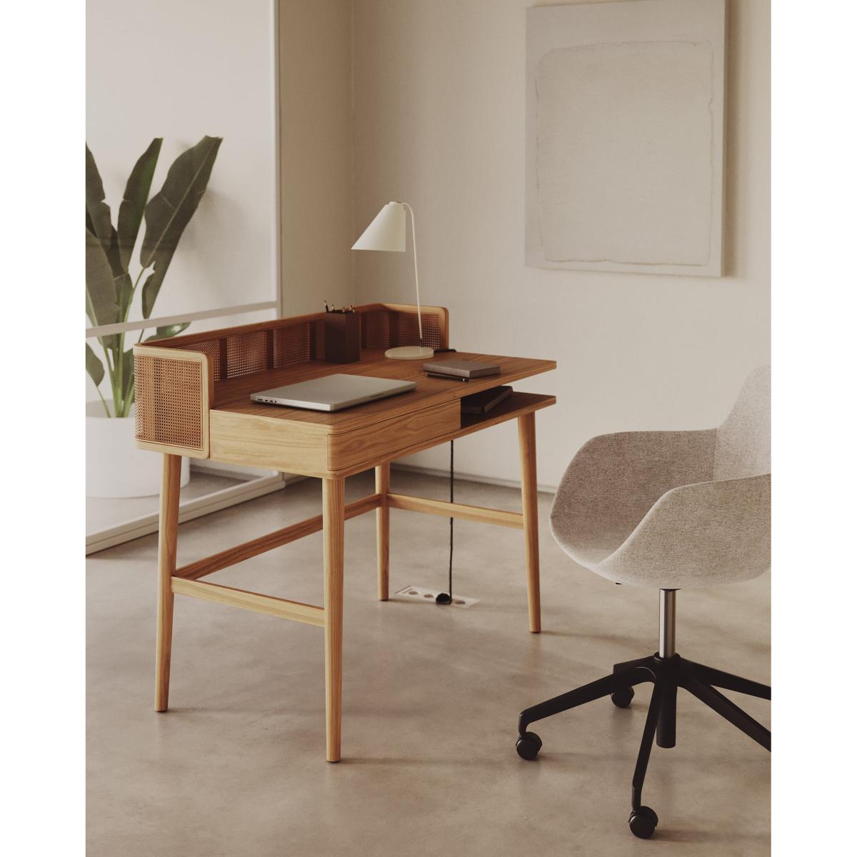 Trust in sustainable wood to set the mood in your work space and keep your place cosy. The Araxi desk is solid ash wood, with a rattan panel at the back that adds style to your working days.