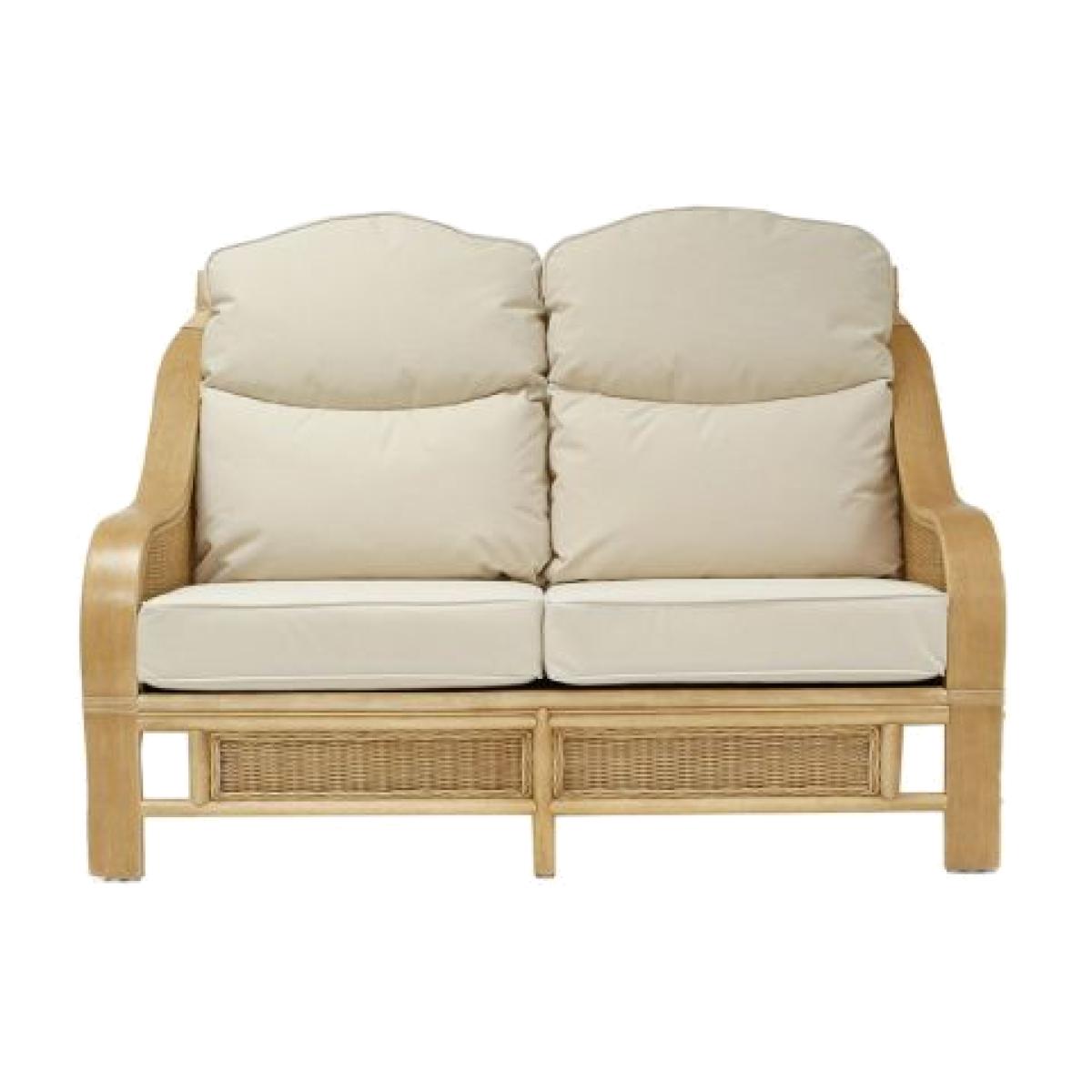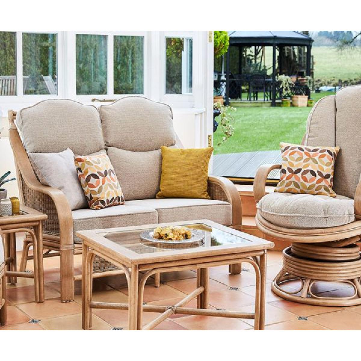 This stunning, spacious Arbroath sofa has been expertly handcrafted to offer the ultimate lounging experience. Its sweeping planed, cane arms and rattan side panels in natural oak wash provide comfort and style. Topped with sumptuous, plumped upholstered cushions in a range of stunning designs complete the look. Partner with our Arbroath range of accessories to create a beautiful suite for your conservatory, orangery, sun room, garden room or living area. Exclusive hand crafted design Cushions made in the UK Also available in Frame only (cushions not included) Dimensions: 104cm (H) x 93cm (D) x 151cm (W) 2 Year Manufacturer's Guarantee