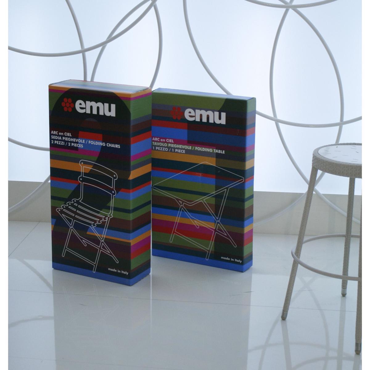 Arc En Ciel is a collection dedicated to those wanting to furnish and enjoy their outdoor spaces in full, however small. This collection is composed of one rectangular table (L 70 cm x W 50 cm) and one folding chair (W 42,5 cm x P 43 cm x H 81 cm). Arc En Ciel is a collection where no production detail has been negected to ensure that scale and usability need not impede on aesthetics and durability. Made of lacquered steel, the elements are suitable for an outdoor use.