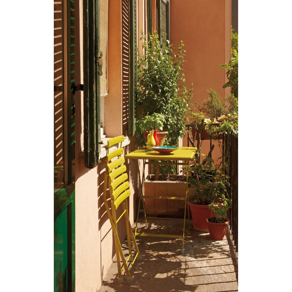 Light, colourful and affordable: Arc en Ciel collection exudes joie de vivre! Arc and Ciel consists of a chair and rectangular table (70 x 50 cm) available in a range of cheerful, bright colours. Don’t be afraid of mixing different colours! This set is ideal for creating nice dining areas, whether indoors or outdoors: kitchen, open space, conservatory, terrace,. This lightweight, folding and easy-to-use lacquered steel furniture can be moved from a living room to a garden as the season requires. We love the timeless style, affordable price and fun packaging with a handle facilitating transport. It will certainly be a favourite of anyone who receives it! The price above includes one Arc en Ciel chair only (table sold separately). You can also buy a set of one Arc en Ciel table and two Arc en Ciel chairs, delivered in a practical but lovely gift packaging.