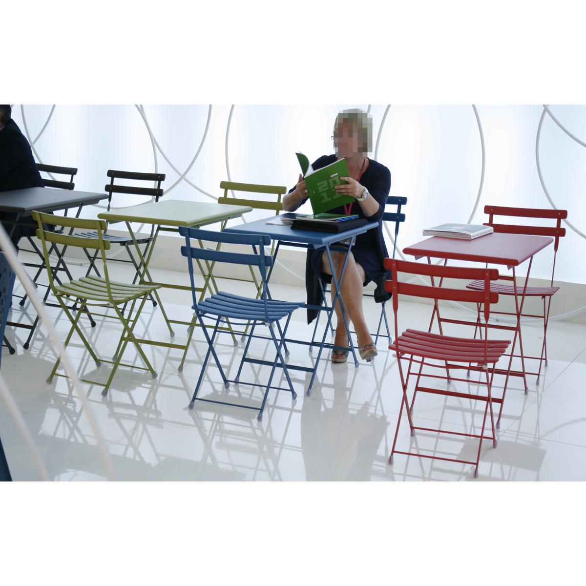 Arc En Ciel is a collection dedicated to those wanting to furnish and enjoy their outdoor spaces in full, however small. This collection is composed of one rectangular table (L 70 cm x W 50 cm) and one folding chair (W 42,5 cm x P 43 cm x H 81 cm). Arc En Ciel is a collection where no production detail has been negected to ensure that scale and usability need not impede on aesthetics and durability. Made of lacquered steel, the elements are suitable for an outdoor use.