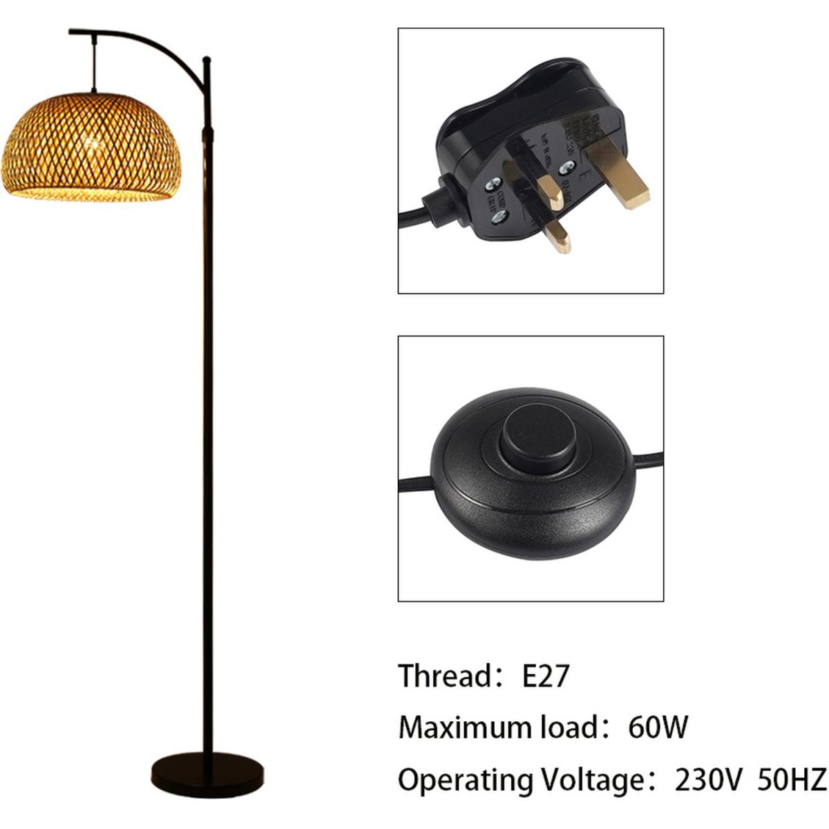 Arc Tall Ratten Floor Lamp with Foot-switch - Natural