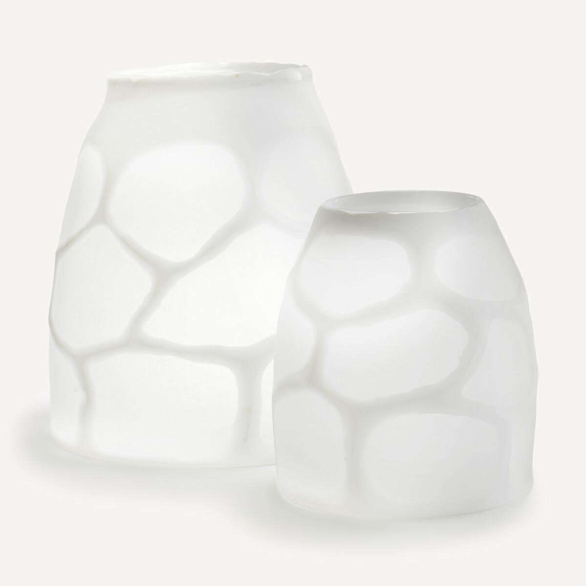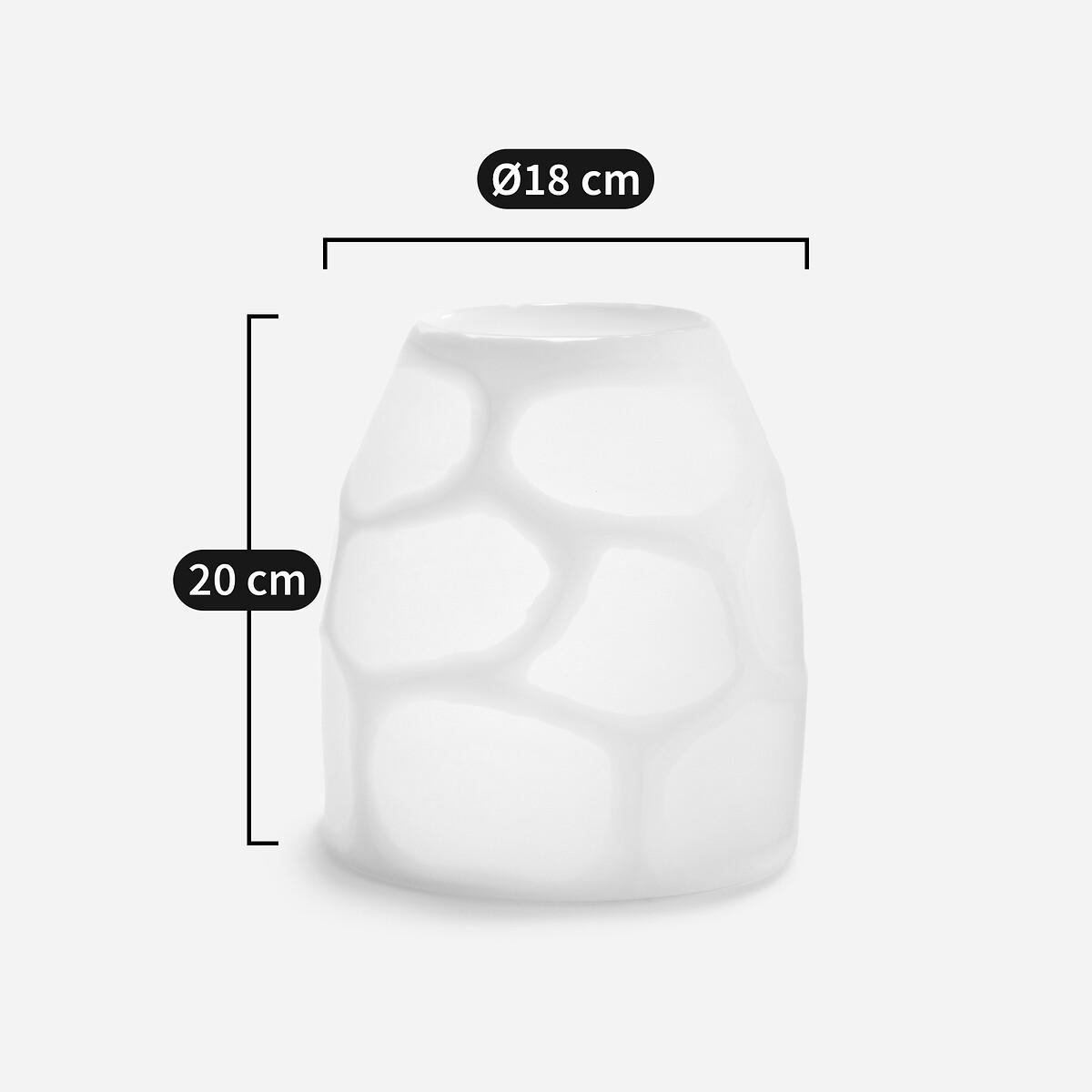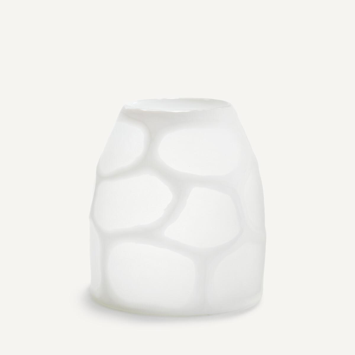 The shapes created by its play of mattness and sheer evoke troglodyte dwellings. The frosted glass creates a subtle visual effect, giving this sleek vase a textured, opalescent print. Product Details • Frosted glass • Hand-crafted, each piece is unique. Shapes, colours and dimensions may vary slightly from product to product. Dimensions • Diameter: 18cm • Height: 20cm. Dimensions and weight of parcel • 1 parcel • W24.5 x H27.5 x D24.5cm. 1.9kg