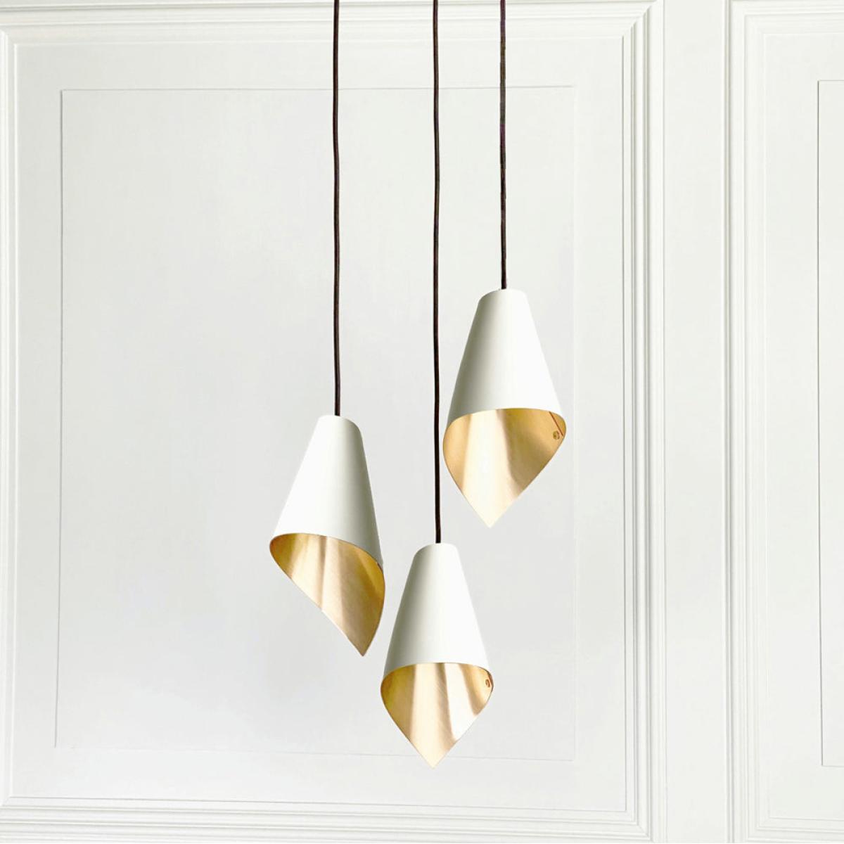 These lights are hand crafted and made to order for you. The ARC 3 cascade is a sleek and luxurious pendant light. Perfect for illuminating a particular space, such as a dining table or stairwell or to be installed where space is at a premium such as next to a bed. The ARC cascade pendant is handcrafted in our studio in Warwickshire. The attention to detail continues with the circular ceiling rose in black or white, which are finished with beautiful copper or brass thumb screws and detailing. Available in a range of colours and finishes and 2 sizes, standard and maxi. Our ARC range also includes a wall light and plug in wall light. Dimensions: Standard - H: 120 x W: 38 cm Maxi - H: 120 x W: 40 cm Bulb Type: 3 x G9 Max 7W LED - not included Care Instructions:Dust with a clean, dry, soft cloth. No harsh abrasives or cleaners. Made in Britain