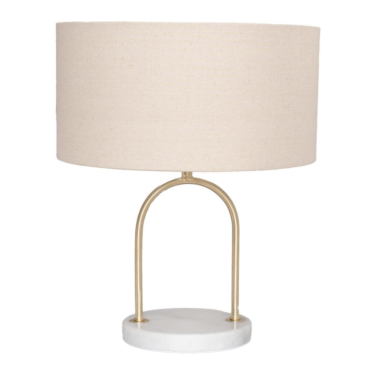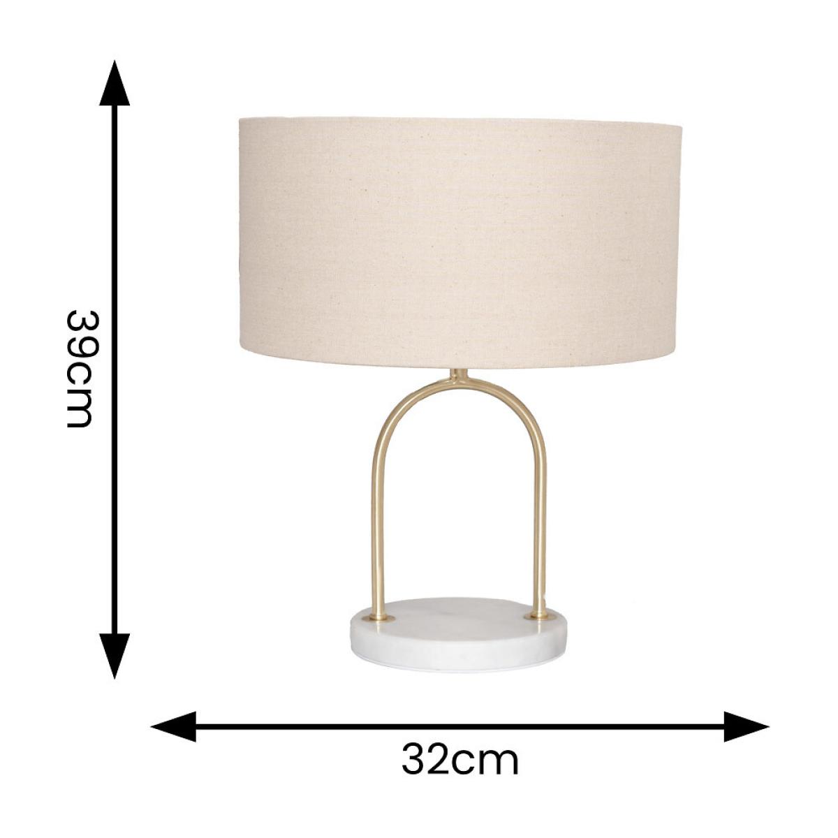 Brighten up your home with this stylish table lamp, featuring a sleek metal arch and a chic marble base. The large white drum shade casts a warm, inviting glow, perfect for creating a relaxed atmosphere. Whether perched on your side table, desk, or bedside, this lamp adds elegance and personality to any room. A delightful blend of luxury and charm, it's the perfect way to illuminate your space while making a bold statement!