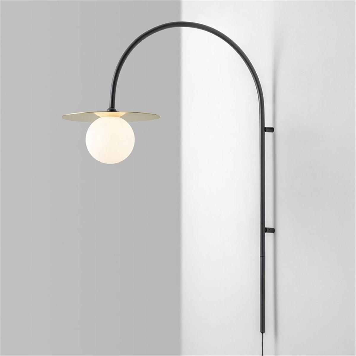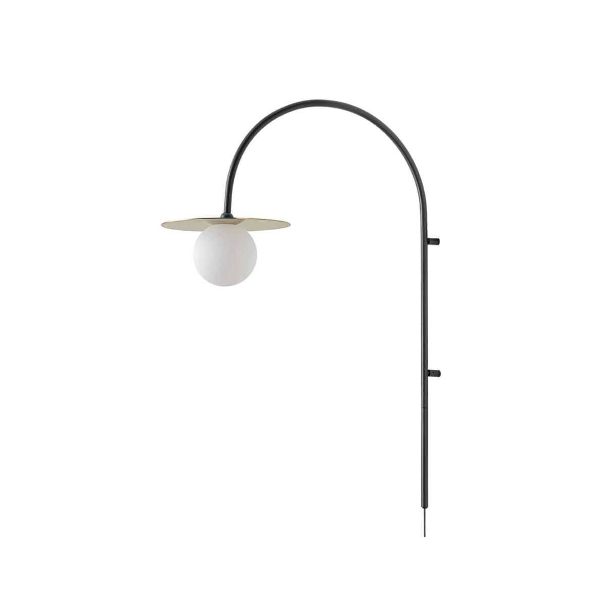 Light up any space in style with this plug-in Arch wall light from houseof. Made from metal, it features a sleek powder-coated finish in a deep charcoal tone and is complete with a brass disc and opal glass shade.
