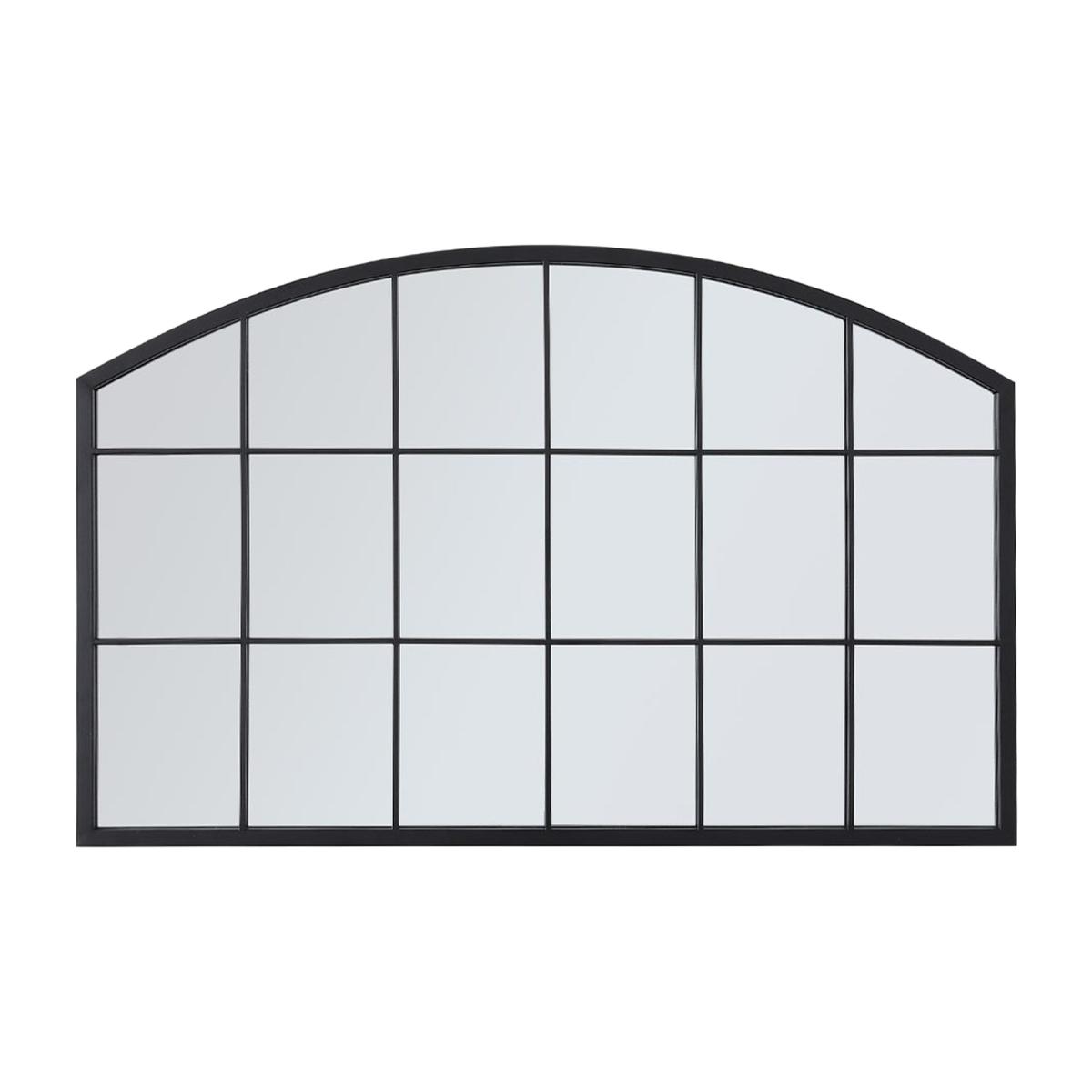 Arched 18-Grid Glass Wall Mirror with Metal Frame - Black