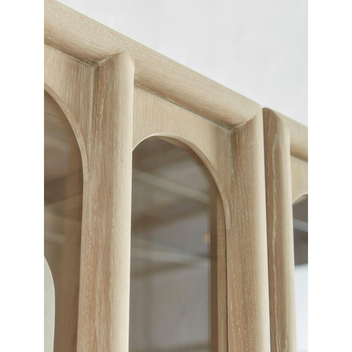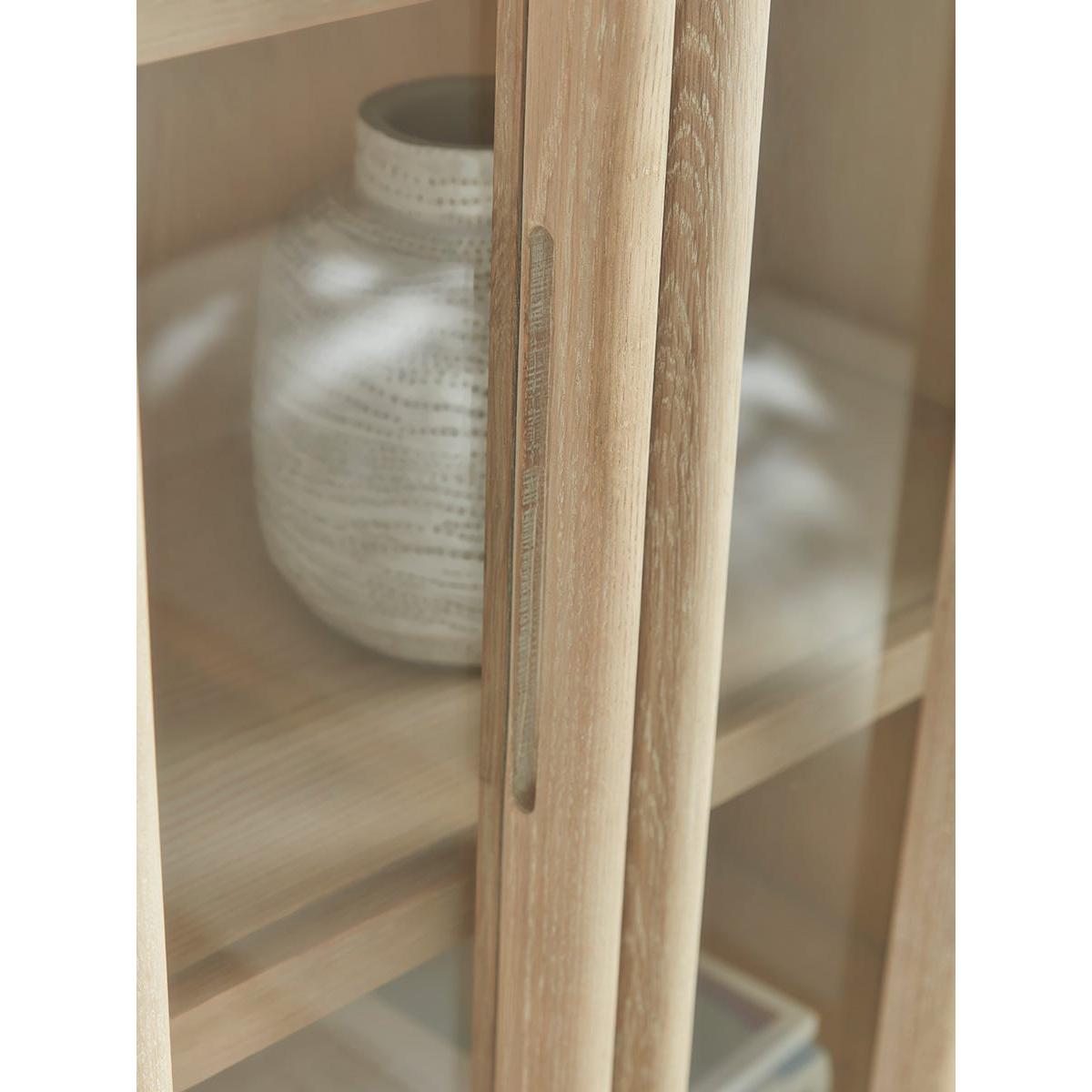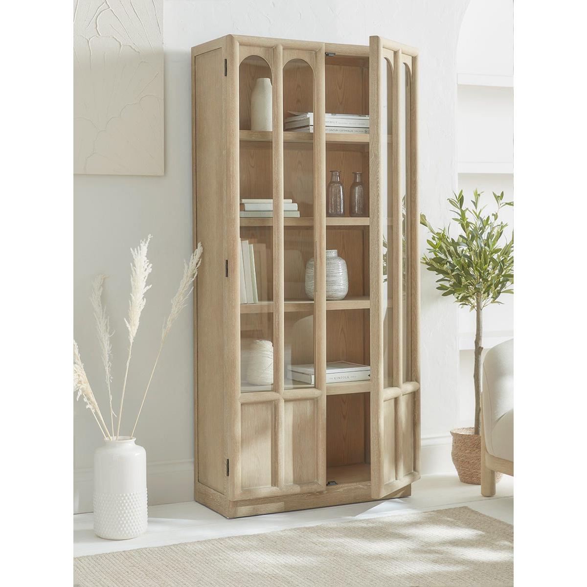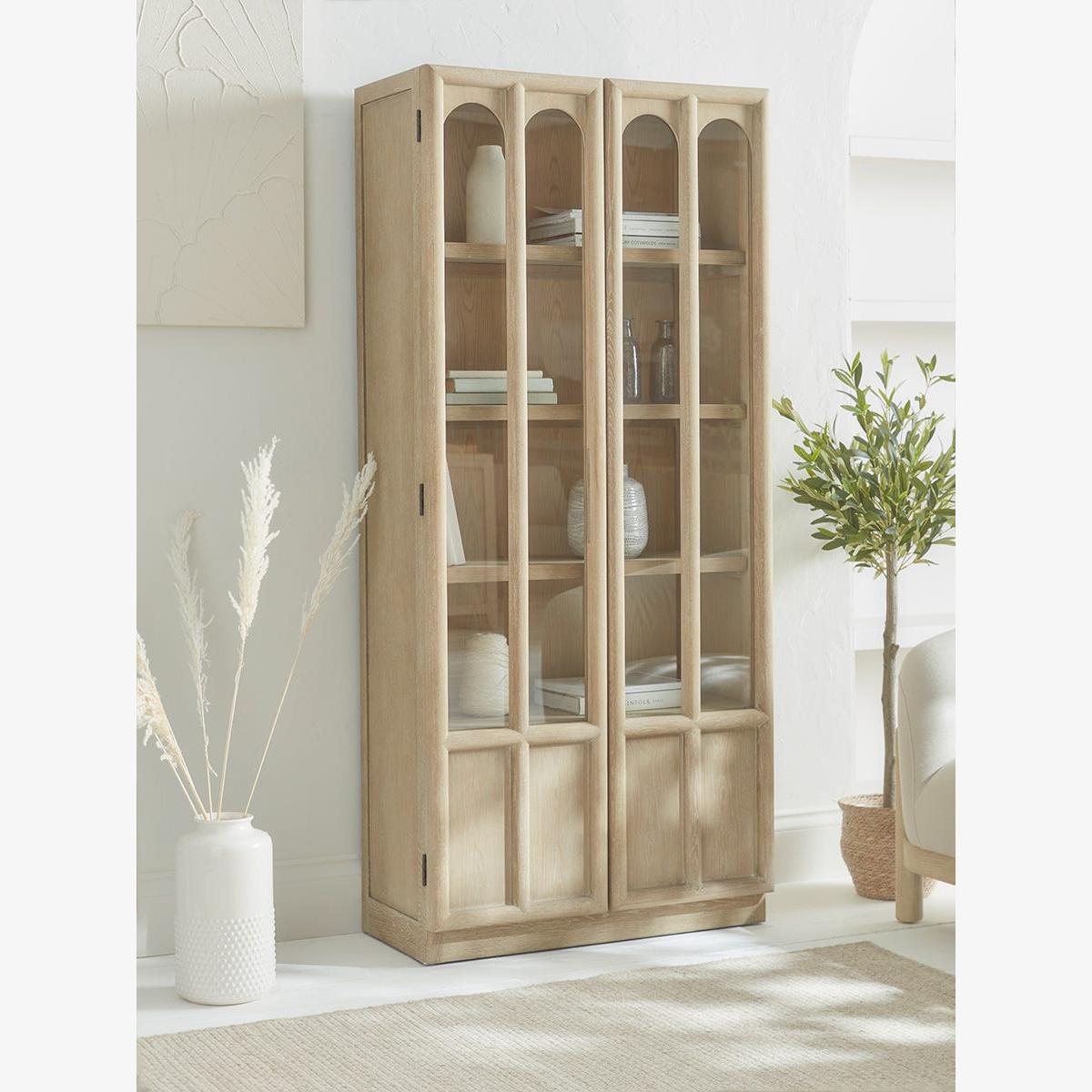 Crafted from oak, this cabinet has a warm depth of tone which will resonate in both traditional and contemporary settings. Arched frames add pleasing detail to the top of the glass doors, while solid wood panes to the bottom allow less decorative items to be concealed. The cabinet has four shelves and magnetic closures to the doors.