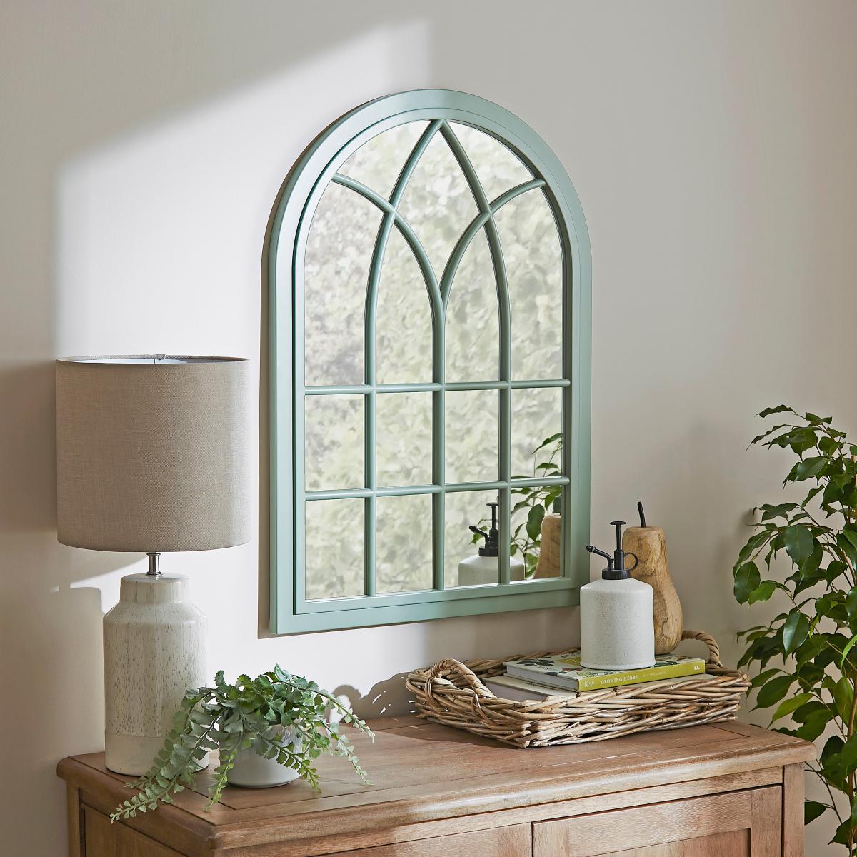 * Window style * Arched shape * Choice of frame colour * Wall hanging - keyhole fixing * Indoor or outdoor use Add character to your space with this arched window-style mirror, designed for both indoor and outdoor use. Its elegant shape and choice of colours make it a versatile addition, whether brightening up a garden wall or enhancing your hallway. Made with a durable plastic frame and back case, it’s a lightweight yet sturdy option built to withstand the elements. The classic window pane design creates a sense of depth, making smaller spaces feel larger and more open. Easy to hang, this wall mirror is a simple way to bring timeless style to any setting.