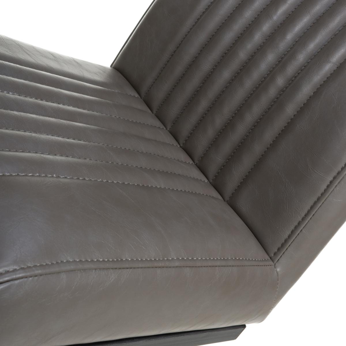 A modern industrial bar chair, upholstered in durable brownish grey leather effect. Vertical centre stitching. Supplied with dark grey metal cantilever legs. Assembly required. Sold in boxes of 2.