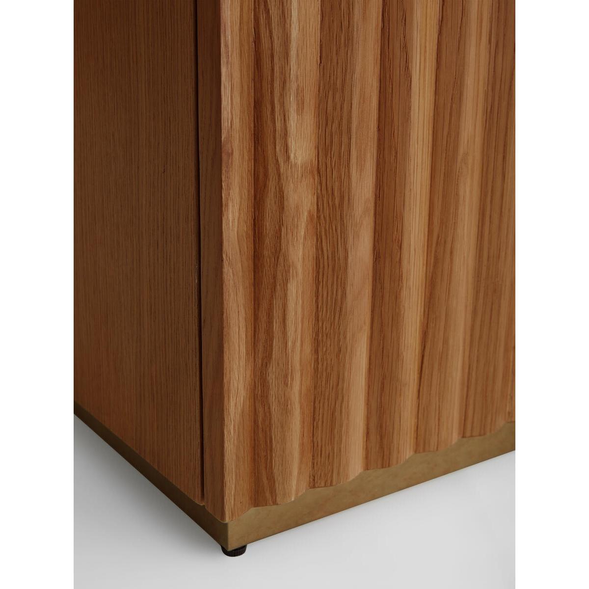 I love the arches table for its warm oak fluted front and dark marble top - the contrast feels grounded without overpowering a scheme. It sits neatly in mid-century modern or Scandinavian-inspired bedrooms and even adds depth to a more eclectic or art-deco mix. Styling-wise, keep the surface uncluttered: pair a streamlined lamp with a single vase or candle beside a book to highlight the marble veining and wood grain. The hidden drawer is handy for stashing glasses or chargers, so your bedside stays tidy.