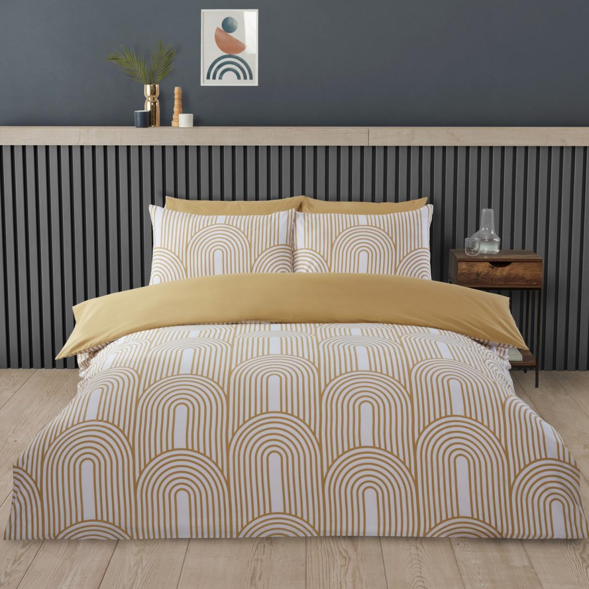 Arches Geometric Polycotton Duvet Set With Pillowcase - Ochre / King