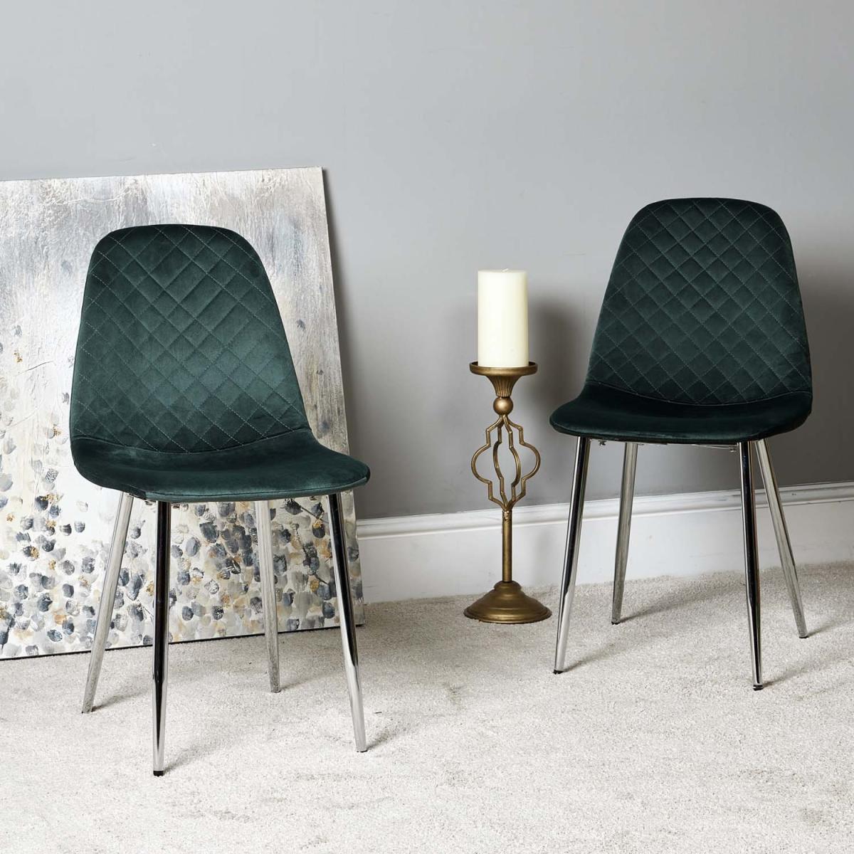 Archie Dining Chair Chrome Legs - Dark Green Set of 2