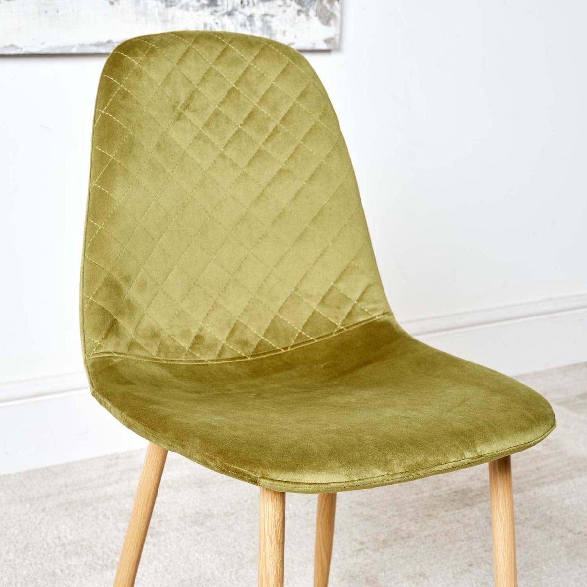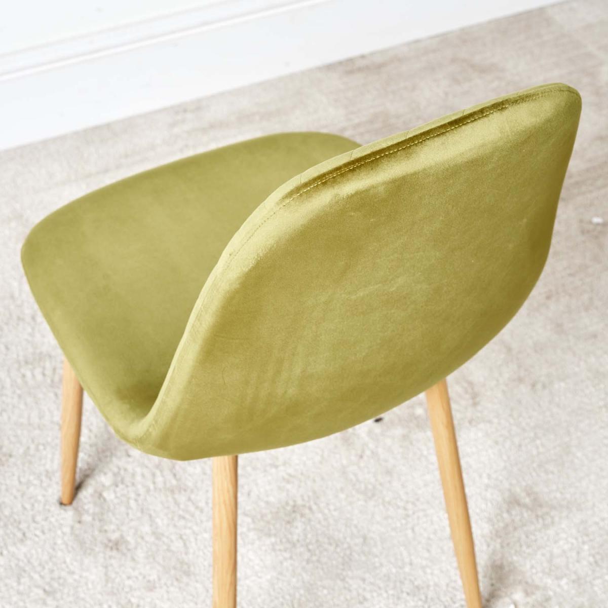 These Archie chairs will give your dining room a pop of colour thanks to the smart light green hue. Through soft velvet upholstery and oak effect legs, elegance and style meet comfort and support. Sold in sets of two, all 6 colour options - teal, gold, grey, light green, dark green and pink - are also available with chrome legs.