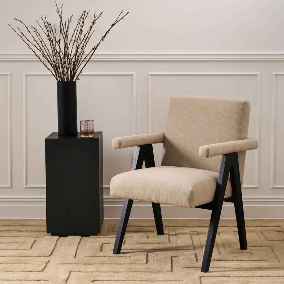 I’ve been reaching for the taupe Archie chair in almost every scheme - its warm neutral upholstery and crisp black frame sit comfortably in both contemporary and mid-century settings. The clean lines make it a versatile partner for light oak tables in Scandi-inspired dining rooms, while the padded arms and seat mean you won’t be rushing guests out after dinner. To style it, mix in soft, natural textures: a chunky wool runner or linen napkins on the table will pick up the fabric’s undertones, and a simple black metal pendant overhead will echo the chair’s frame. Because the seat height is standard, you can swap it between your dining and home-office spaces without awkward adjustments, making it as practical as it is stylish.