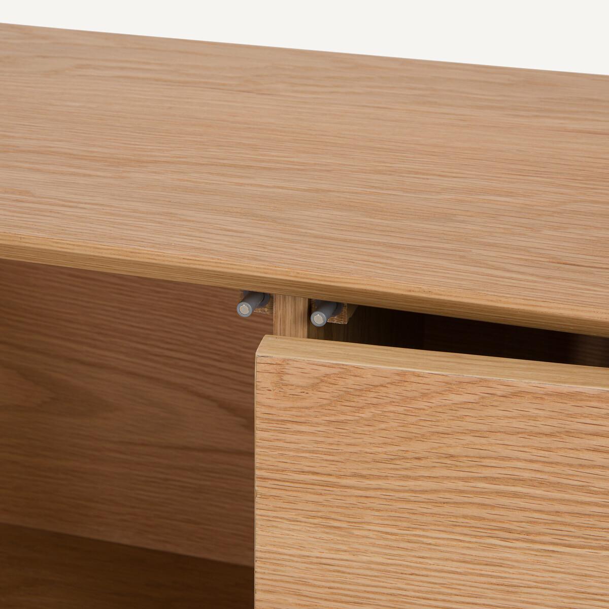 Archivita XL is a new modular storage system. This XL system is deeper and higher than the classic Archivita system, allowing you to optimise your interior storage. It adapts to all spaces over the entire height of your walls up to a ceiling height of 2m30. You can design the format you want. The uprights are to be fixed to the wall and serve as a structure. The brackets make the link between the wooden parts and the uprights. They are multi-positionable, so you can adjust the height of the wooden elements to your liking. Archivita XL is available in oak or walnut, L60cm or L110cm and in different depths up to 42cm. Different elements are available to allow you to create your space: cabinets with doors or drawers, desk, vinyl furniture, TV cabinet, shelves... Wooden elements with a depth of 42cm are only compatible with uprights and XL brackets. Product Details • In oak veneered MDF certified FSC® Mixed with polyurethane varnish finish. • 2 doors with push/pull opening system • 2 storage compartments • To be fixed to the uprights using the brackets sold on the site (compatible only with XL uprights and XL brackets)Quality Info • German brand hardware: reliable, discreet and functional. These accessories ensure the longevity of your product. • Push/pull opening system: light pressure on the door allows it to be opened or closed without a handle. Dimensions. Overall • Width: 110cm • Height: 39cm • Depth: 42cm. Usable space Size per compartment • L52 x H35 x D35.5cmDelivery:. Sold pre-assembled. Available for home delivery. Note! Please check that all access points are large enough to accommodate your delivery (doors, stairs, lifts). • WOOD FROM MORE SUSTAINABLY MANAGED FORESTS AND CONTROLLED SOURCES. FSC® Mix wood contains at least 70% FSC® certified and/or recycled wood, the remainder being FSC® controlled wood. Dimensions and weight of parcel1 parcel L119 x H45 x D49cm, 32kg