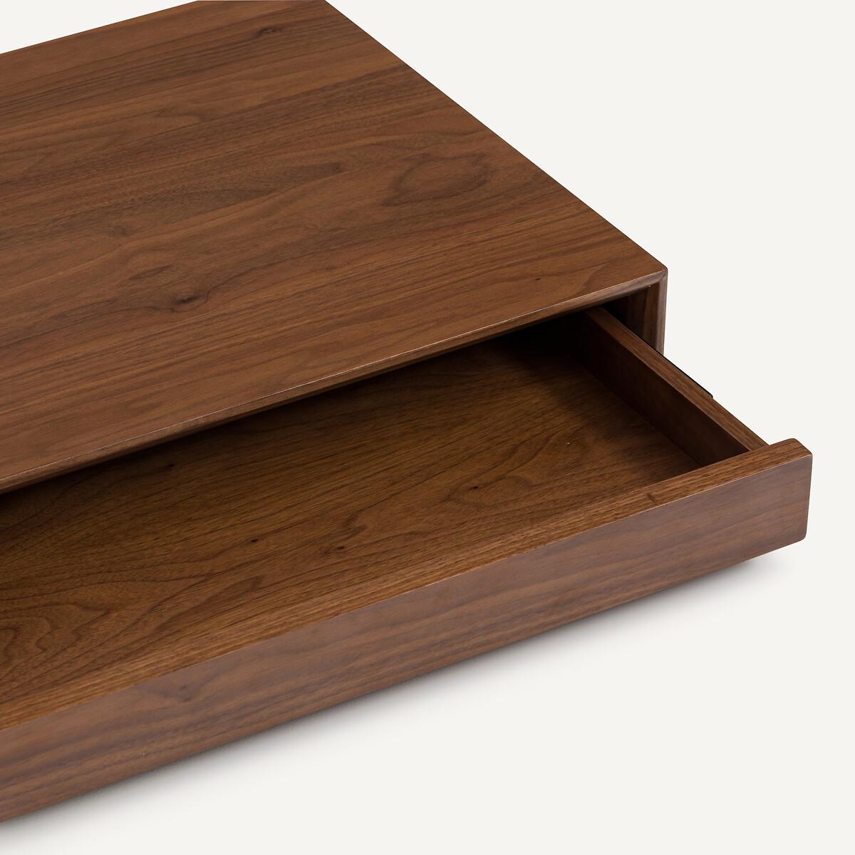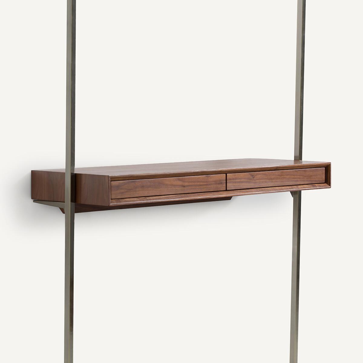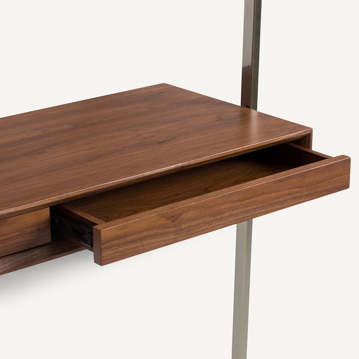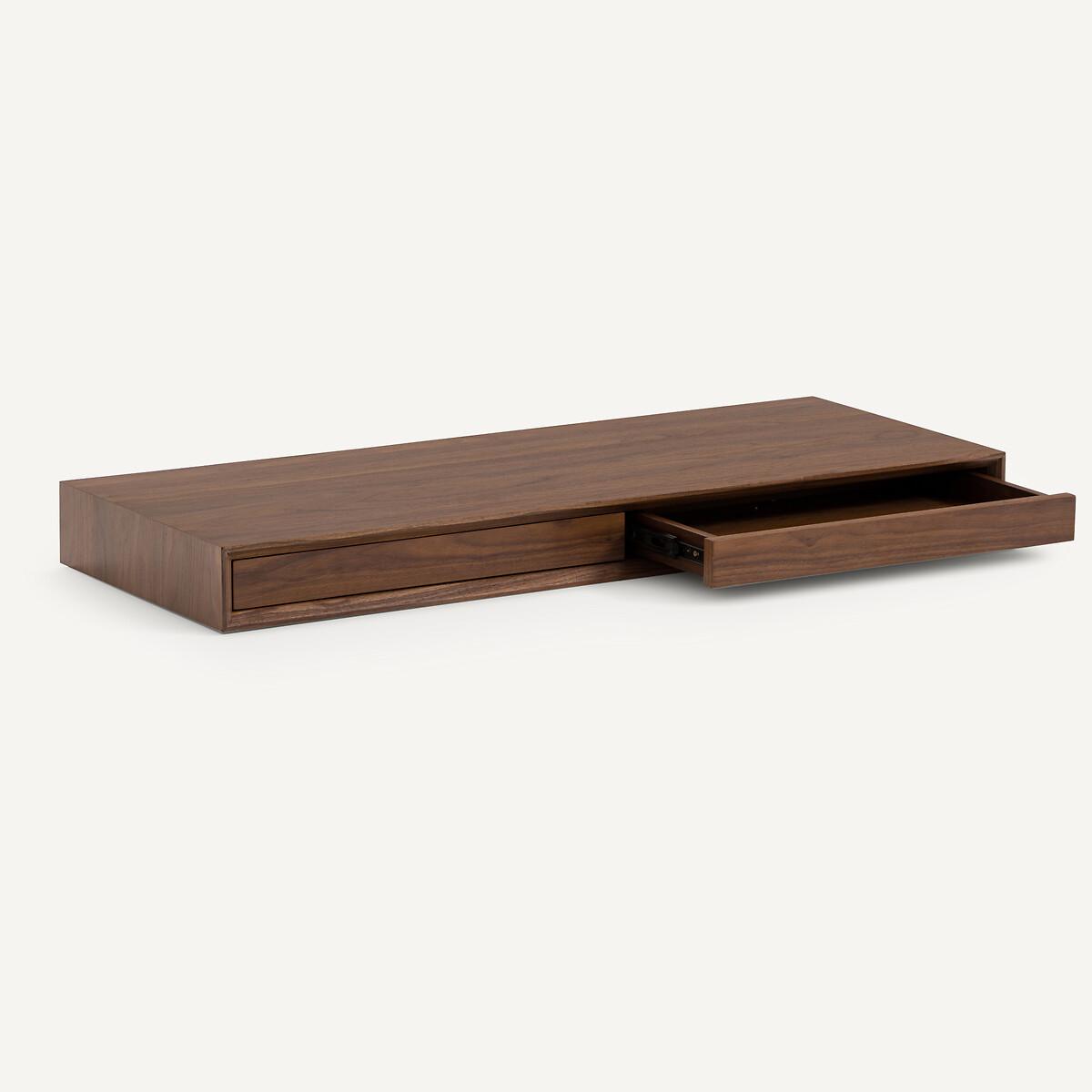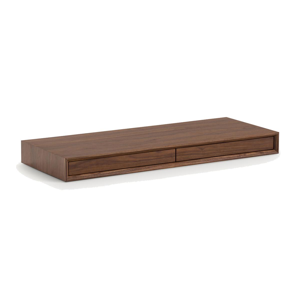 Archivita XL is a new modular storage system. This XL system is deeper and higher than the classic Archivita system, allowing you to optimise your interior storage. It adapts to all spaces over the entire height of your walls up to a ceiling height of 2m30. You can design the format you want. The uprights are to be fixed to the wall and serve as a structure. The brackets make the link between the wooden parts and the uprights. They are multi-positionable, so you can adjust the height of the wooden elements to your liking. Archivita XL is available in oak or walnut, L60cm or L110cm and in different depths up to 42cm. Different elements are available to allow you to create your space: cabinets with doors or drawers, desk, vinyl furniture, TV cabinet, shelves... Wooden elements with a depth of 42cm are only compatible with uprights and XL brackets. Product Details • Walnut-veneered MDF with polyurethane varnish finish • 2 small drawers with push/pull opening system • To be fixed to the uprights using the brackets sold on the site (compatible only with XL uprights and XL brackets) • Desk Quality Info • Push/pull opening system: light pressure on the drawer allows it to be opened or closed without a handle. Dimensions. Overall • Width: 110cm • Height: 10cm • Depth: 42cm. Usable space • Drawers : L46 x H5 x D28cmDelivery:. Sold pre-assembled. Available for home delivery. Note! Please check that all access points are large enough to accommodate your delivery (doors, stairs, lifts). Dimensions and weight of parcel1 parcel L127.5 x H30 x D60cm, 24kg
