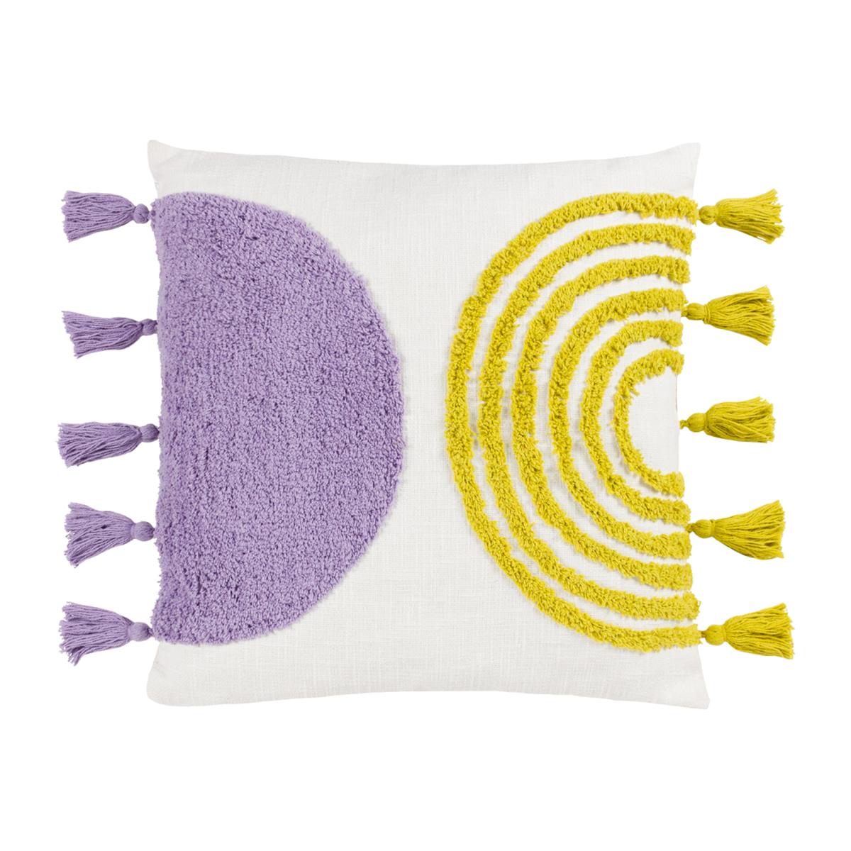 Archow Tufted Tasselled Cushion - Lilac-Yellow / Polyester