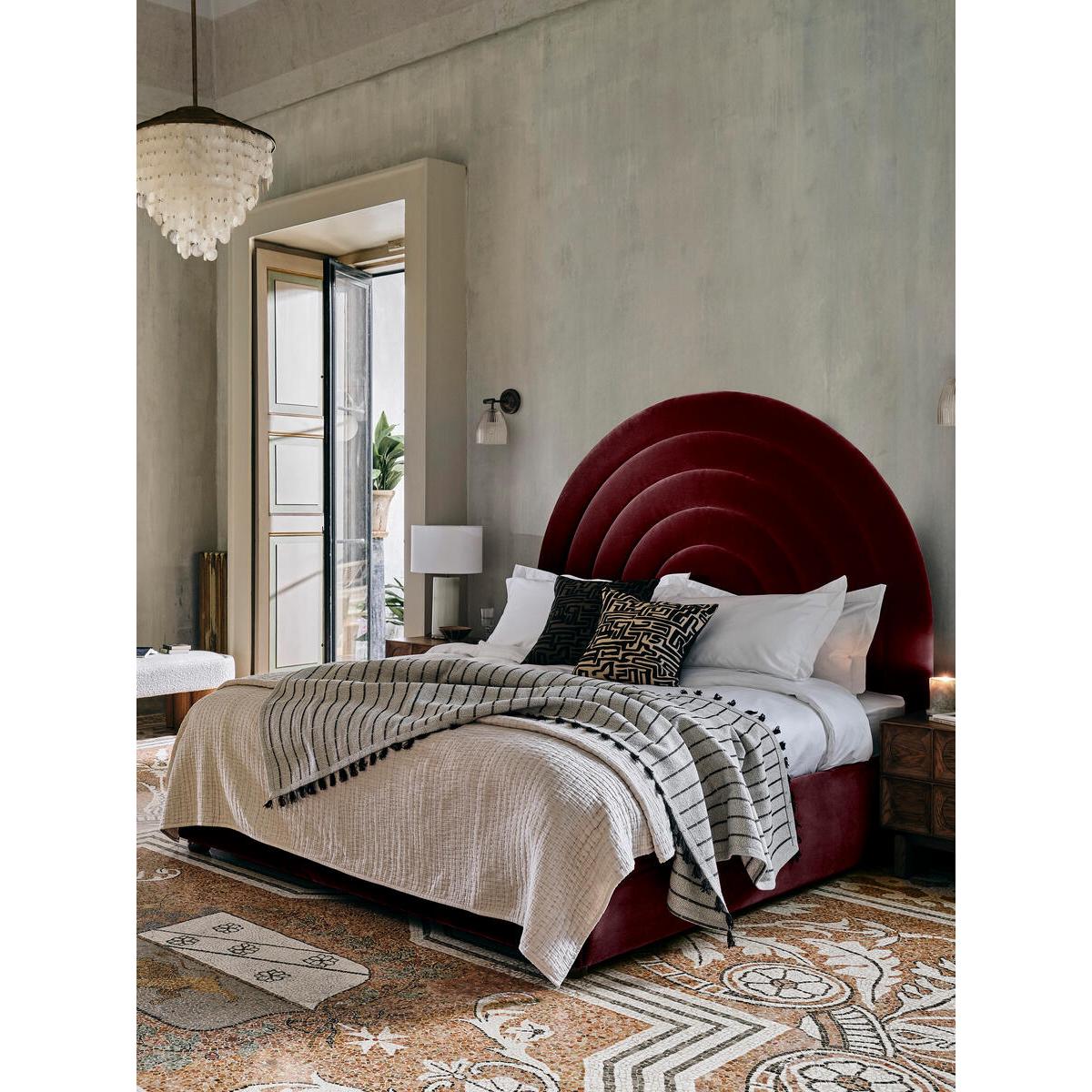 Referencing the bedrooms in our Nashville House, the Archway bedis designed with a tall, arched headboard and fully upholsteredvelvet base. A fluted detail enhances the sculptural frame, andmakes it the standout piece in any bedroom. Choose the right sizeand finish for your sleeping space with mohair, velvet and linenoptions. Emperor size bed. High, sculptural headboard. Fluted detail. Fully upholstered velvet base. Available in different sizes and finishes. Inspired by our Nashville House.