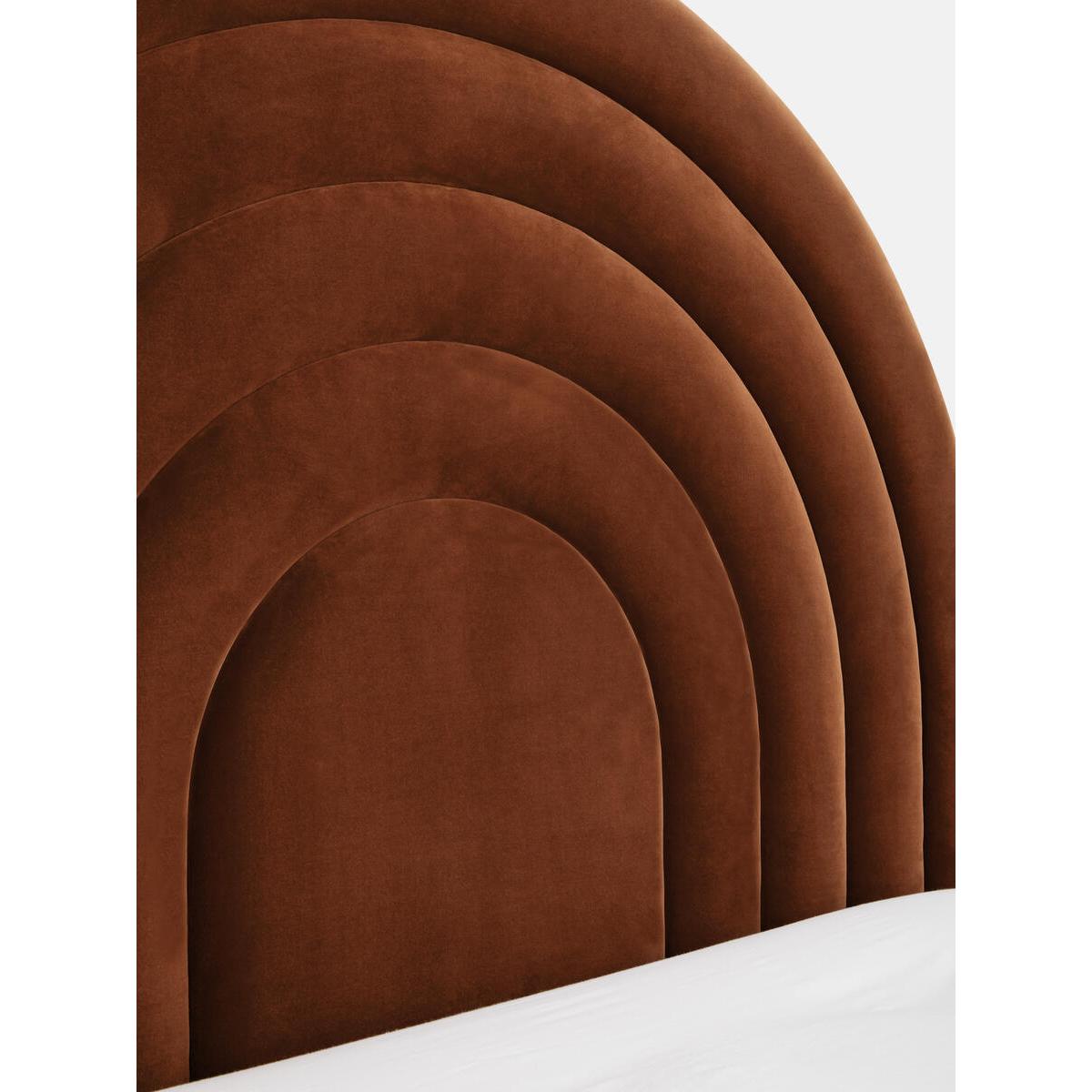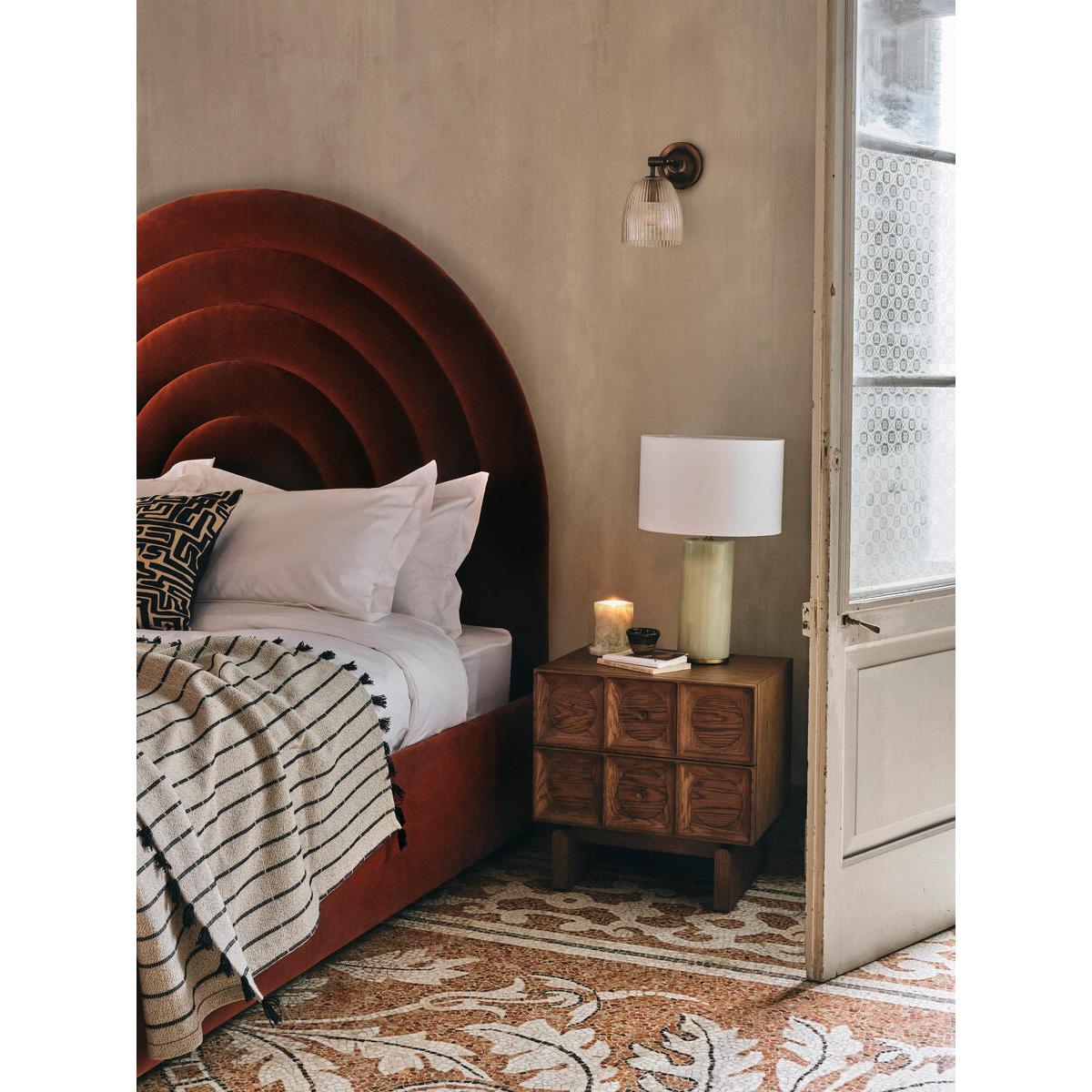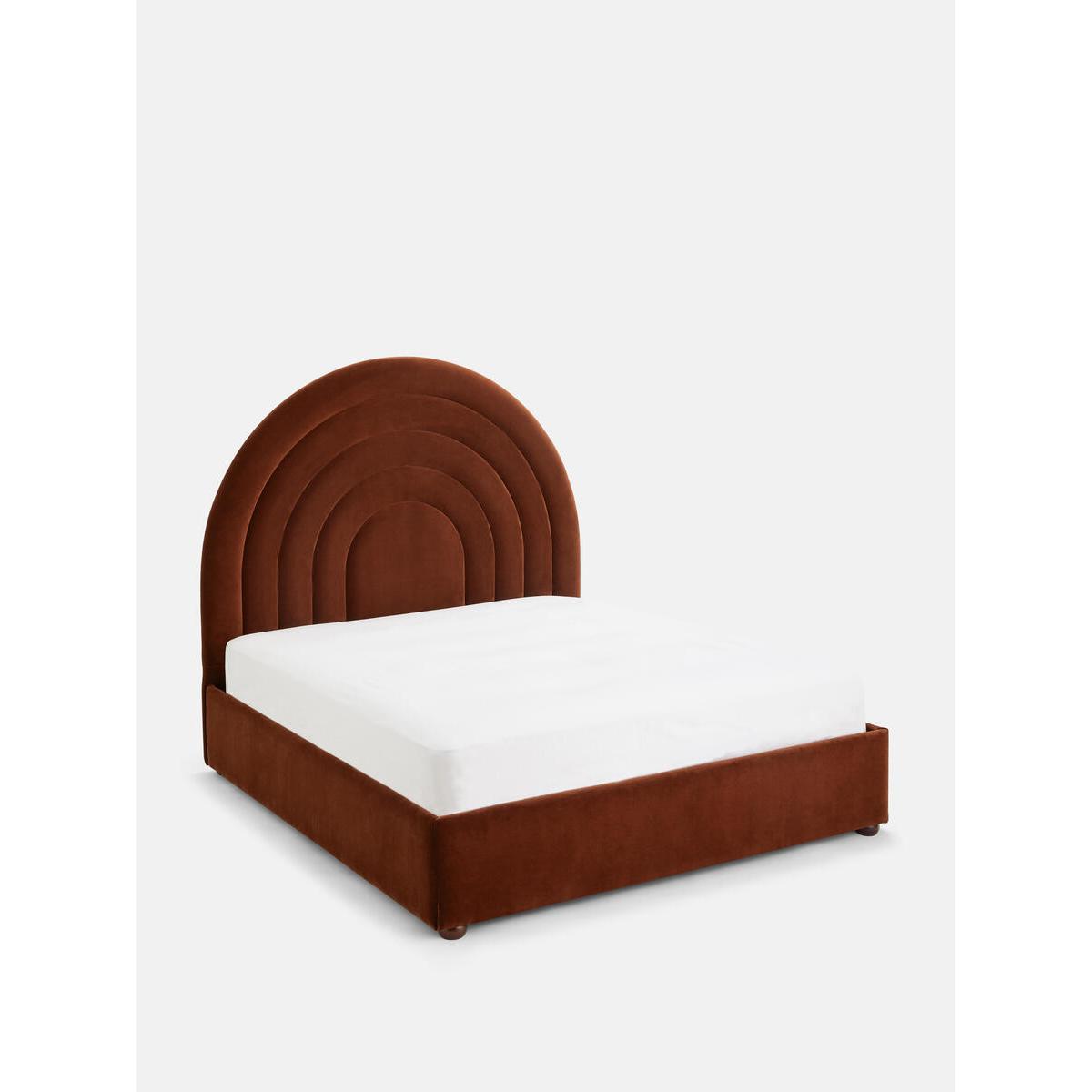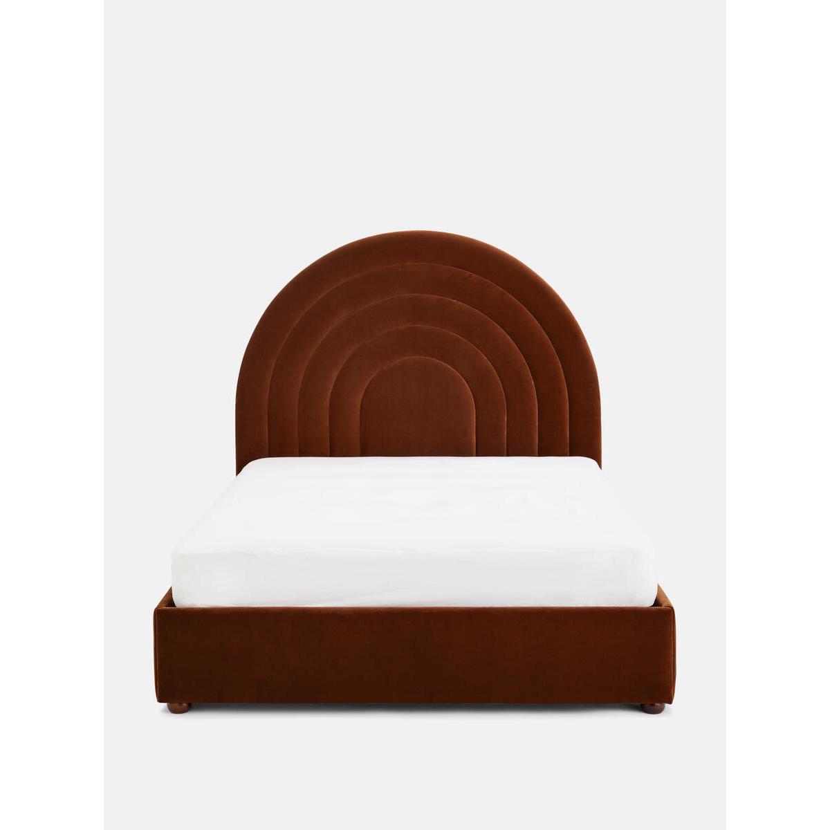 The archway bed in velvet Rust offers a luxe yet versatile statement piece that works especially well in eclectic, boho, or vintage-inspired interiors. I love its bold, sculptural headboard, which adds visual interest without overwhelming a room. It pairs beautifully with warm, earthy tones or layered neutrals to create a cosy, inviting atmosphere. For styling tips, consider keeping bedding layers in textured fabrics or muted hues to let the bed's shape stand out, and add a mix of tactile accessories like knitted throws or velvet cushions for a curated look. This bed also lends itself to both modern and traditional schemes, making it a flexible foundation for personalised styling.