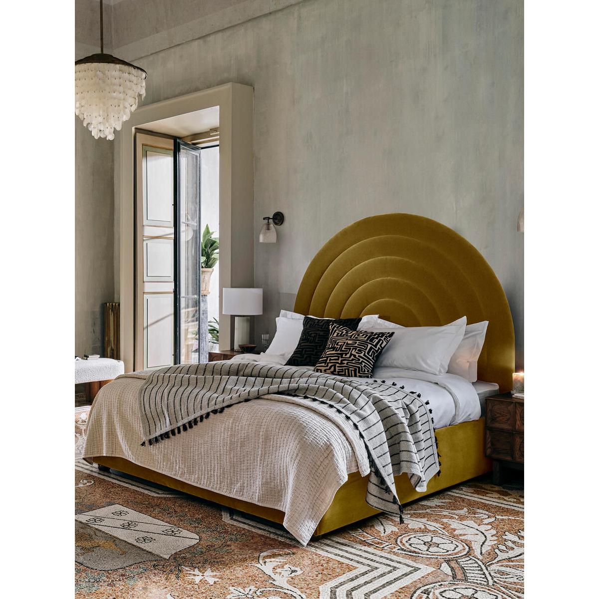 Referencing the bedrooms in our Nashville House, the Archway bedis designed with a tall, arched headboard and fully upholsteredvelvet base. A fluted detail enhances the sculptural frame, andmakes it the standout piece in any bedroom. Choose the right sizeand finish for your sleeping space with mohair, velvet and linenoptions. Super king size bed. High, sculptural headboard. Fluted detail. Fully upholstered velvet base. Available in different sizes and finishes. Inspired by our Nashville House.