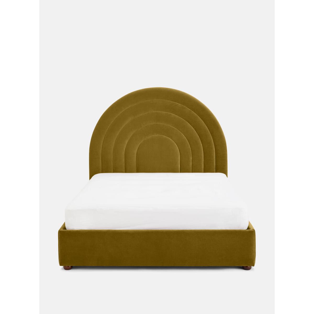 I love this velvet archway bed for its bold, statement-making design and luxurious texture. It works exceptionally well in eclectic, contemporary, or glamorous interiors where a touch of richness is desired. The ochre colour adds warmth and vibrancy, making it an instant focal point in the room. For styling, consider pairing it with neutral or muted bedding to let the bed frame stand out, and incorporate metallic or textured accessories for added depth. To keep the look balanced, opt for bedside tables with clean lines and minimal clutter, ensuring the bed remains the star of the space. This piece is perfect in larger bedrooms where its size can be appreciated without overwhelming the room.