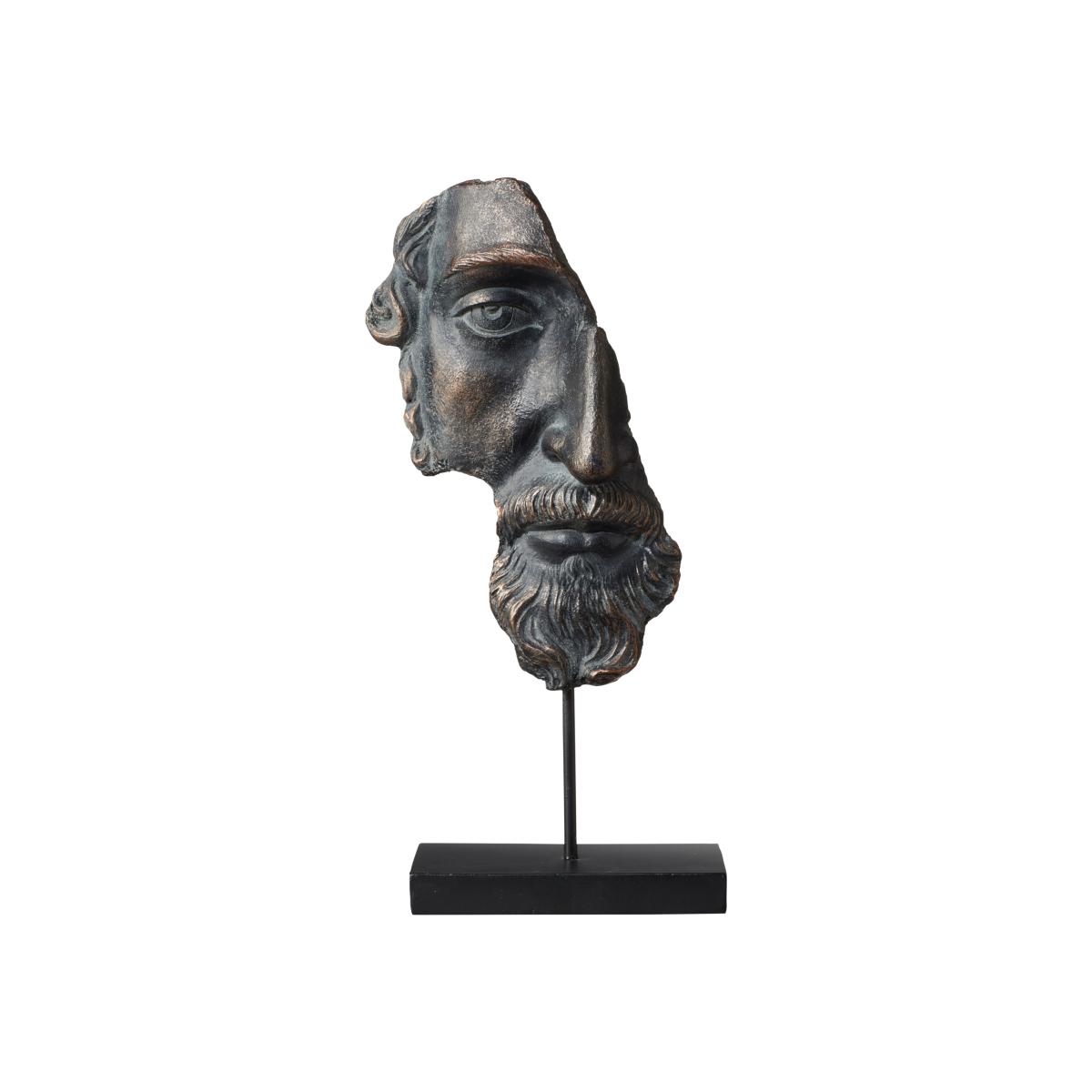 I love this half-head sculpture for its bold, modern edge and historical reference. It works particularly well in contemporary or minimalist interiors where it can serve as an eye-catching focal point. To style it effectively, consider placing it on a sleek console or side table, paired with clean-lined accessories or greenery for contrast. Since it’s all about making a statement, keep surrounding decor understated to let the piece truly shine. Its dark finish lends itself well to monochrome schemes or as a striking accent within a neutral palette. Overall, it’s a versatile piece that can elevate a variety of spaces with its strong visual presence.